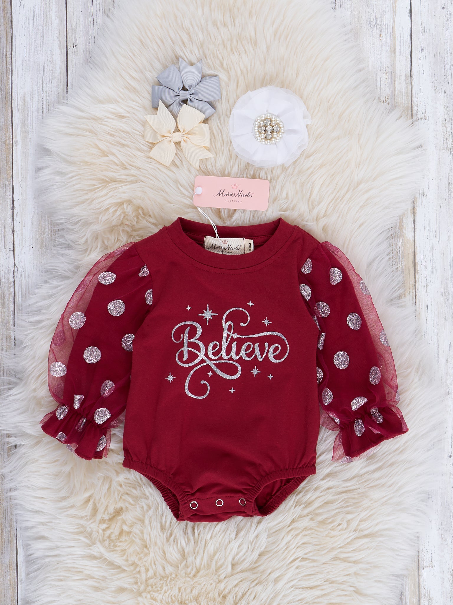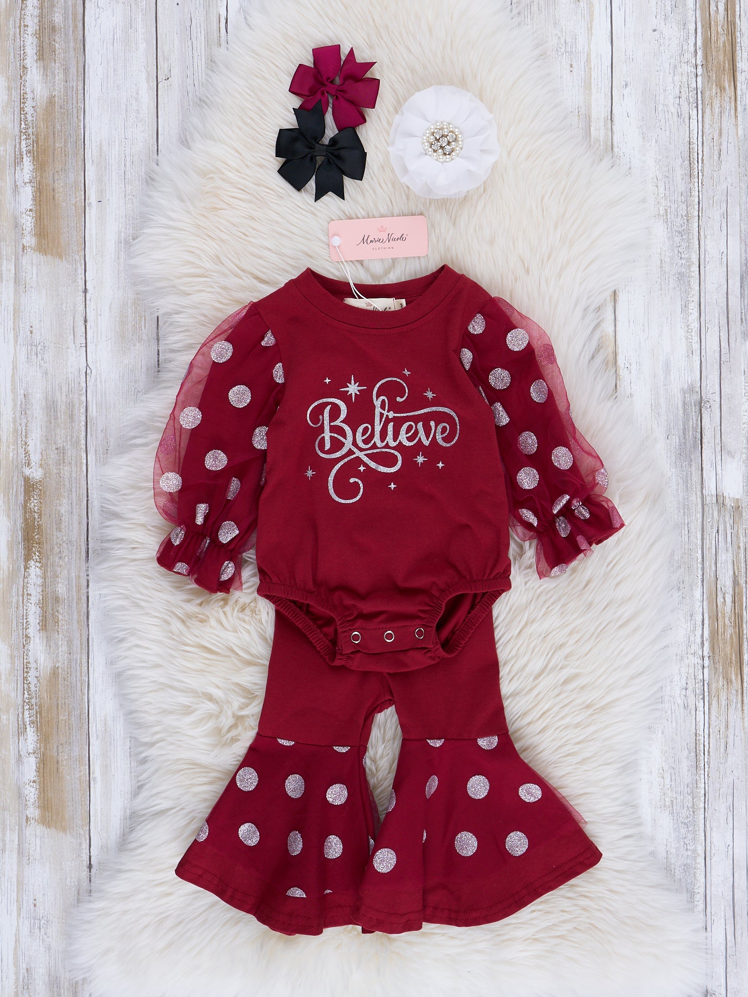 Home › Maroon "Believe" Polka Dot Sister Set