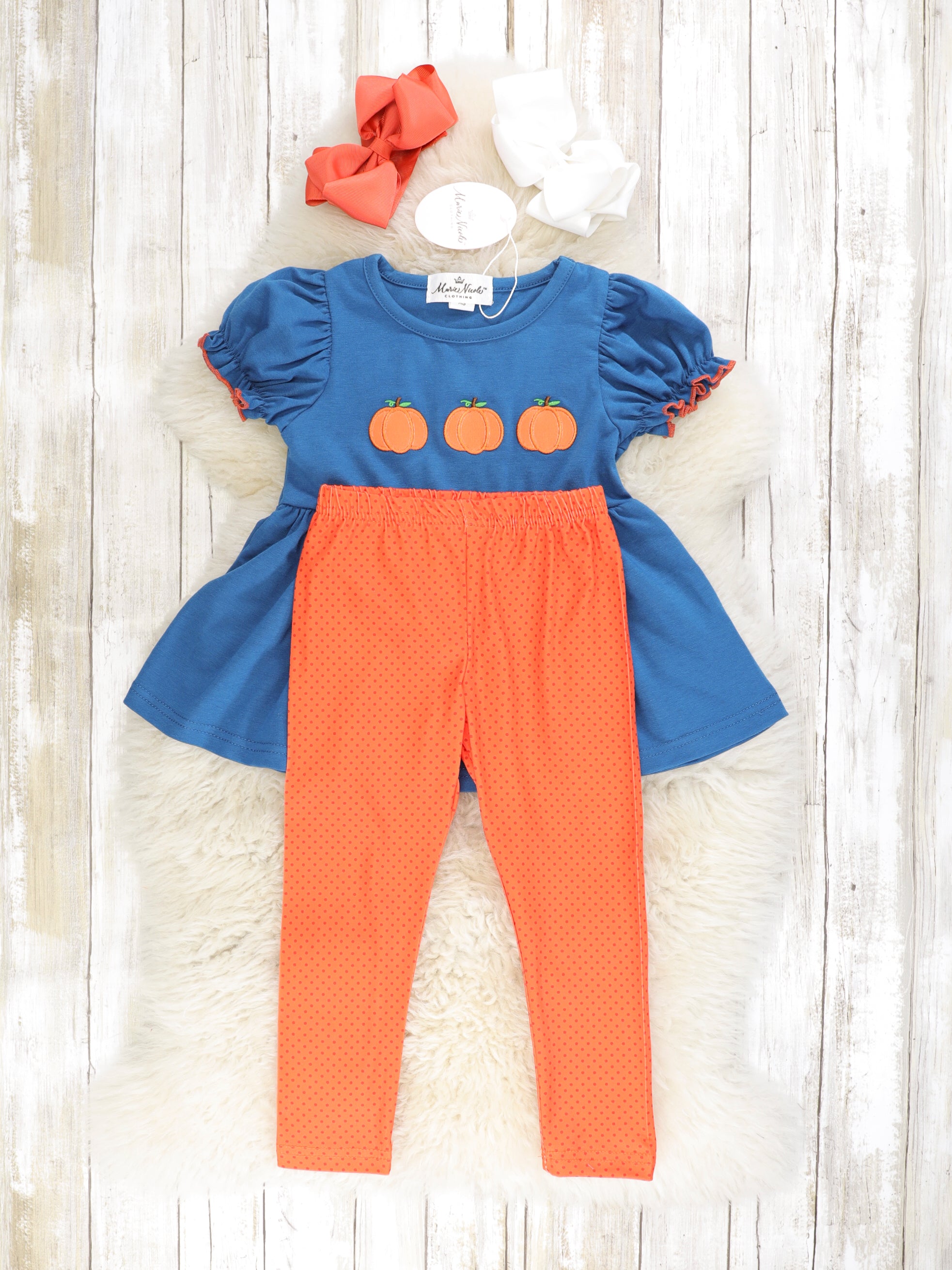 Midnight Blue Pumpkin Peplum Top & Orange Bottoms Outfit