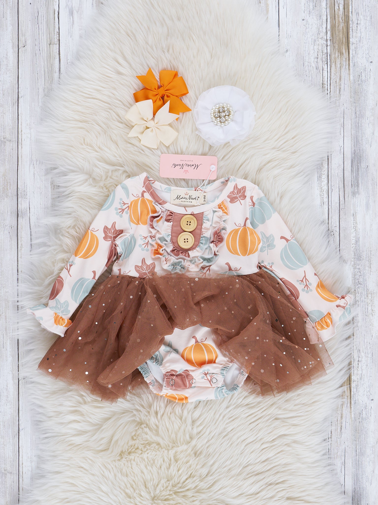 Mint & Brown Pumpkin Garden Sparkle Tulle Romper