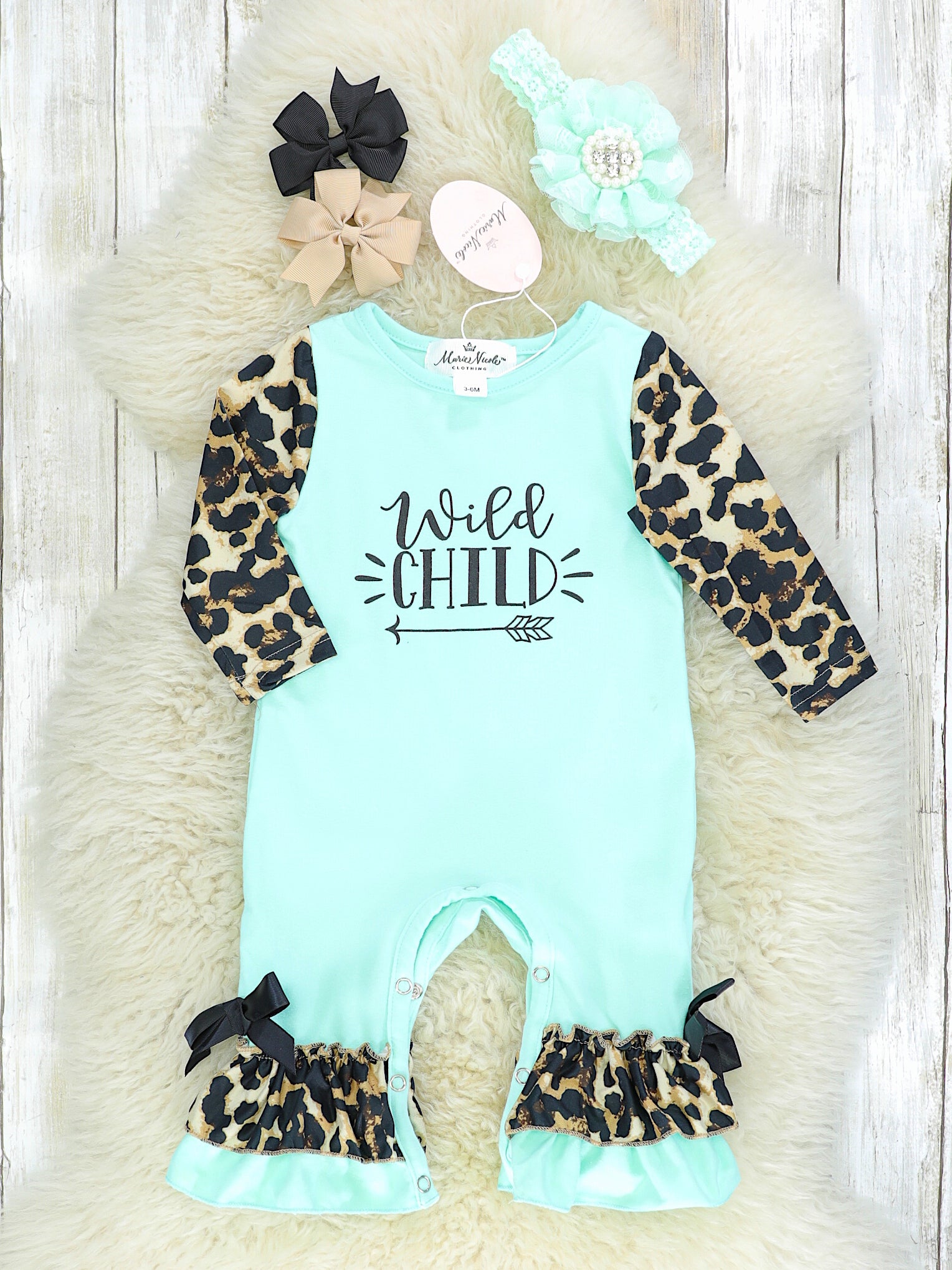 Mint "Wild Child" Leopard Ruffle Romper