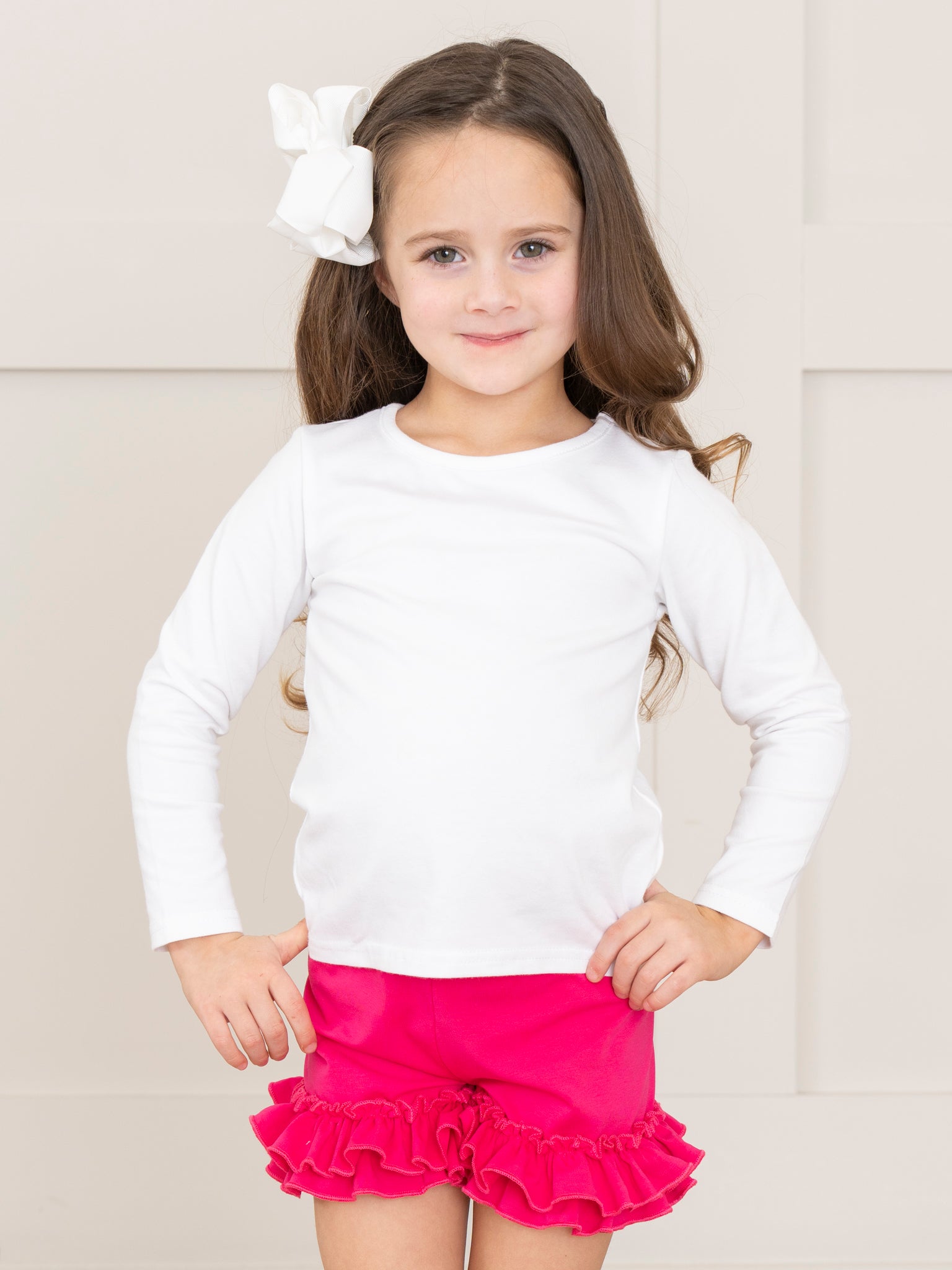 Our softest, sweetest cotton shorts yet! Perfect for wearing under those just too short dresses or paired with your little's favorite t-shirt, she'll always be ready for whatever the day throws at her!