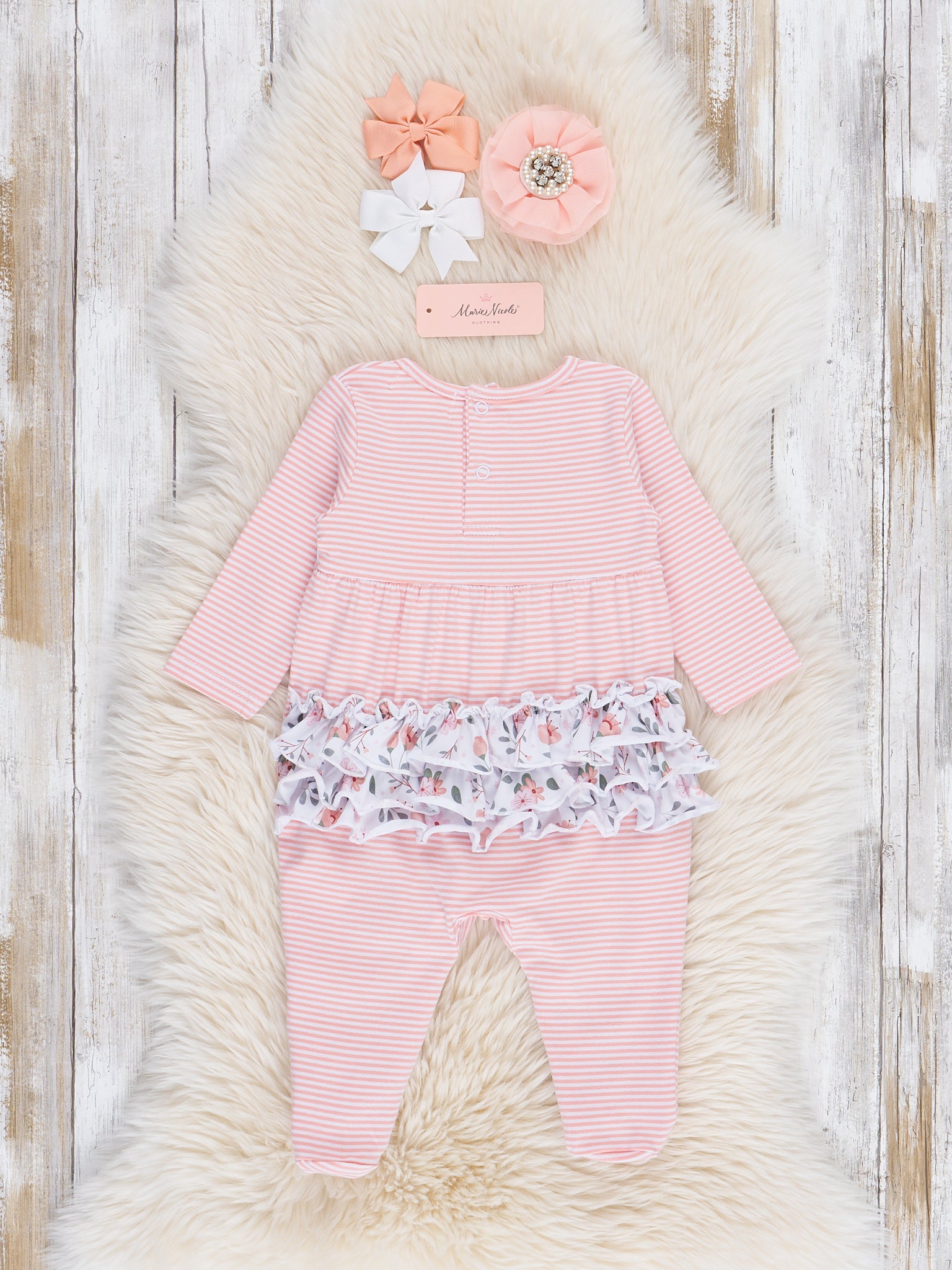 Blushing Bouquets Striped Footed Sleeper Pajamas