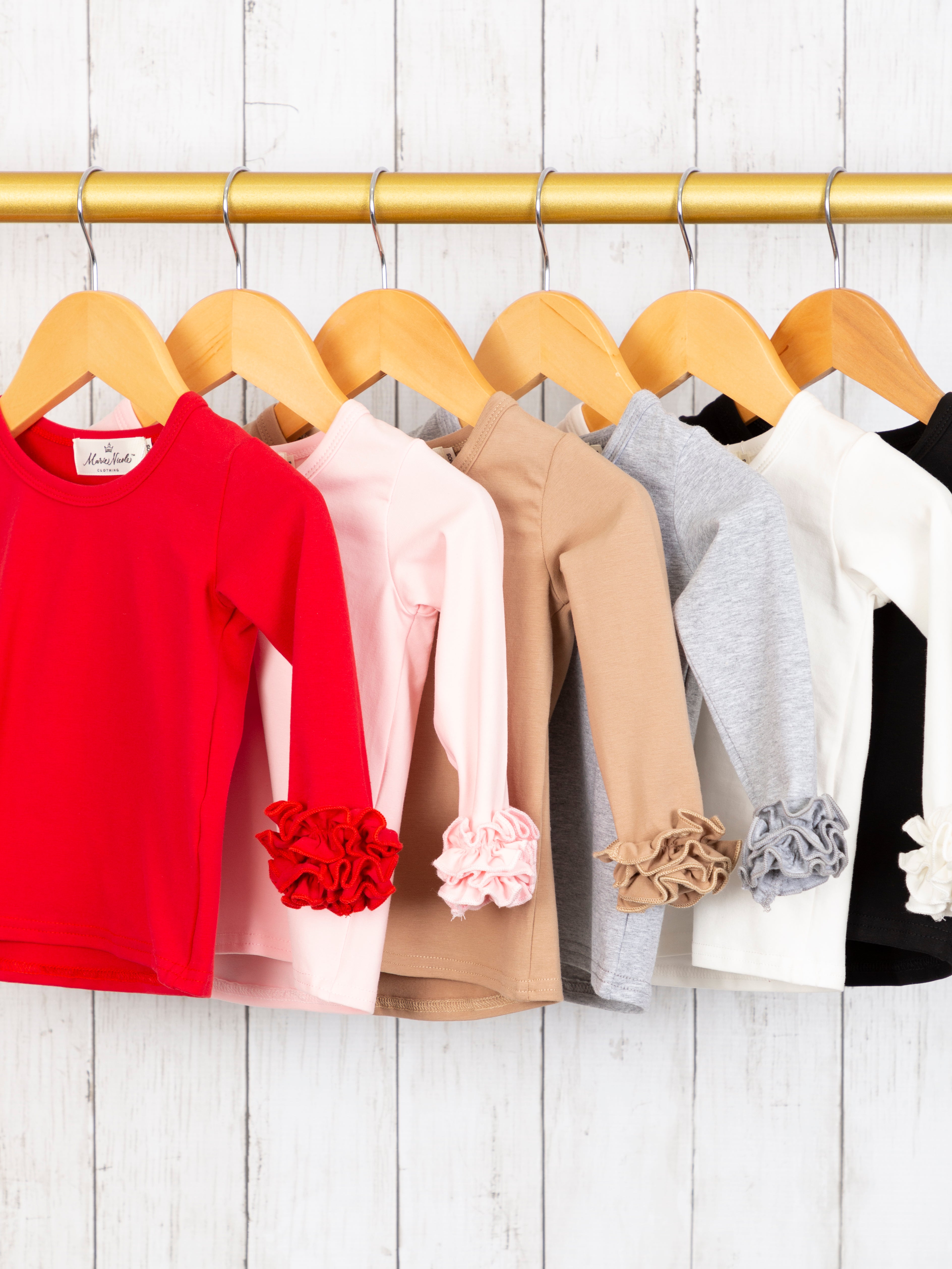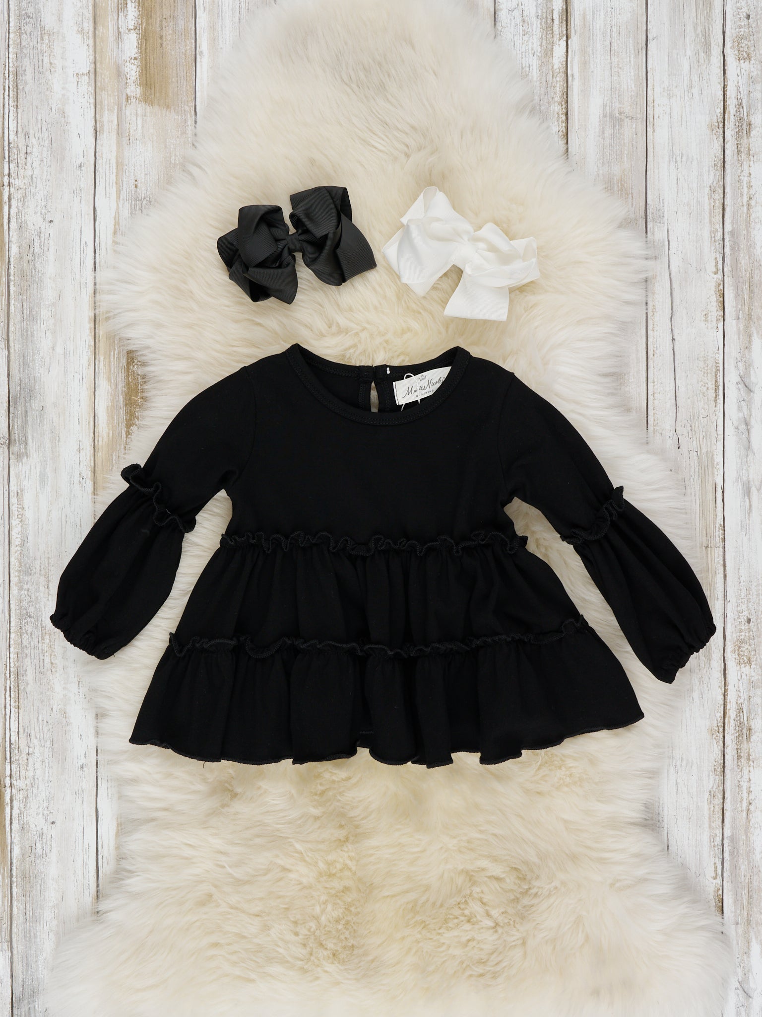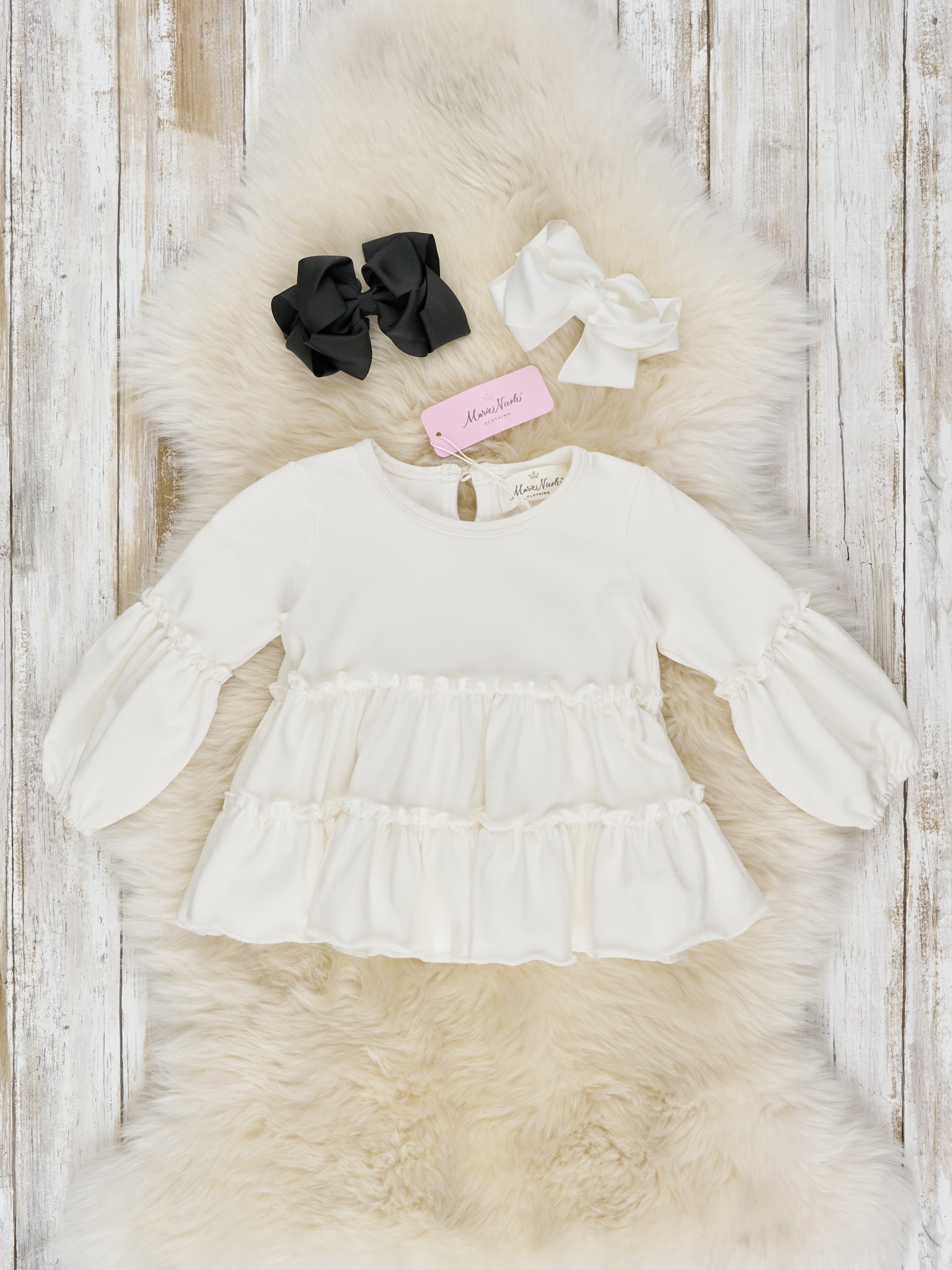 Cotton Puff Sleeve Ruffle Tunic - Multiple Colors
