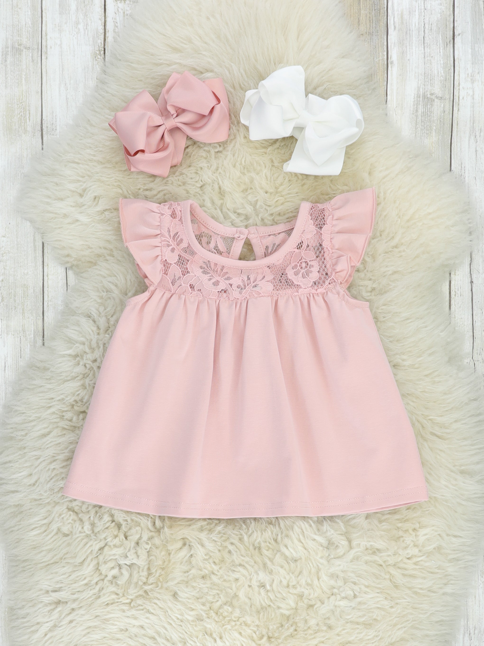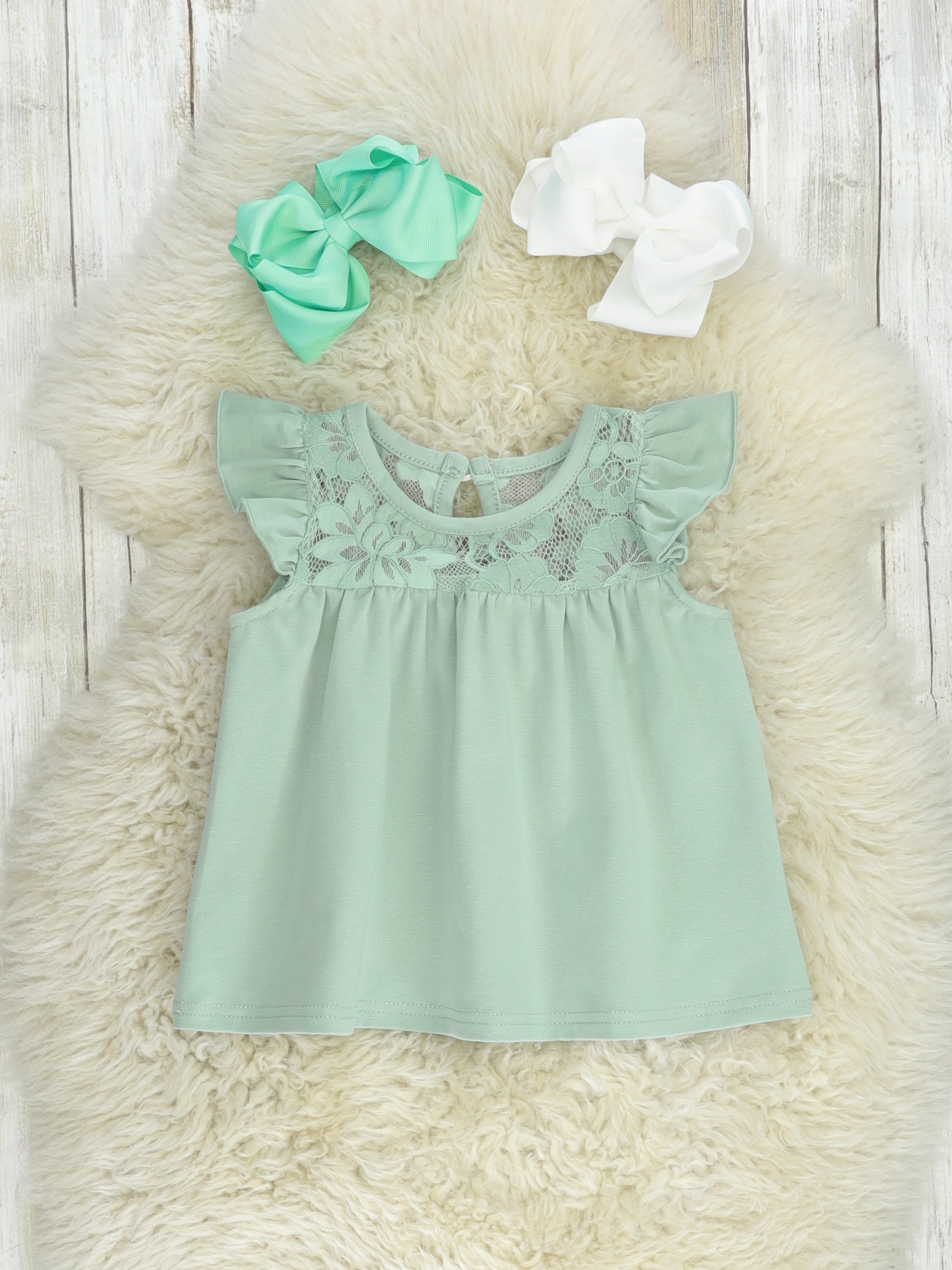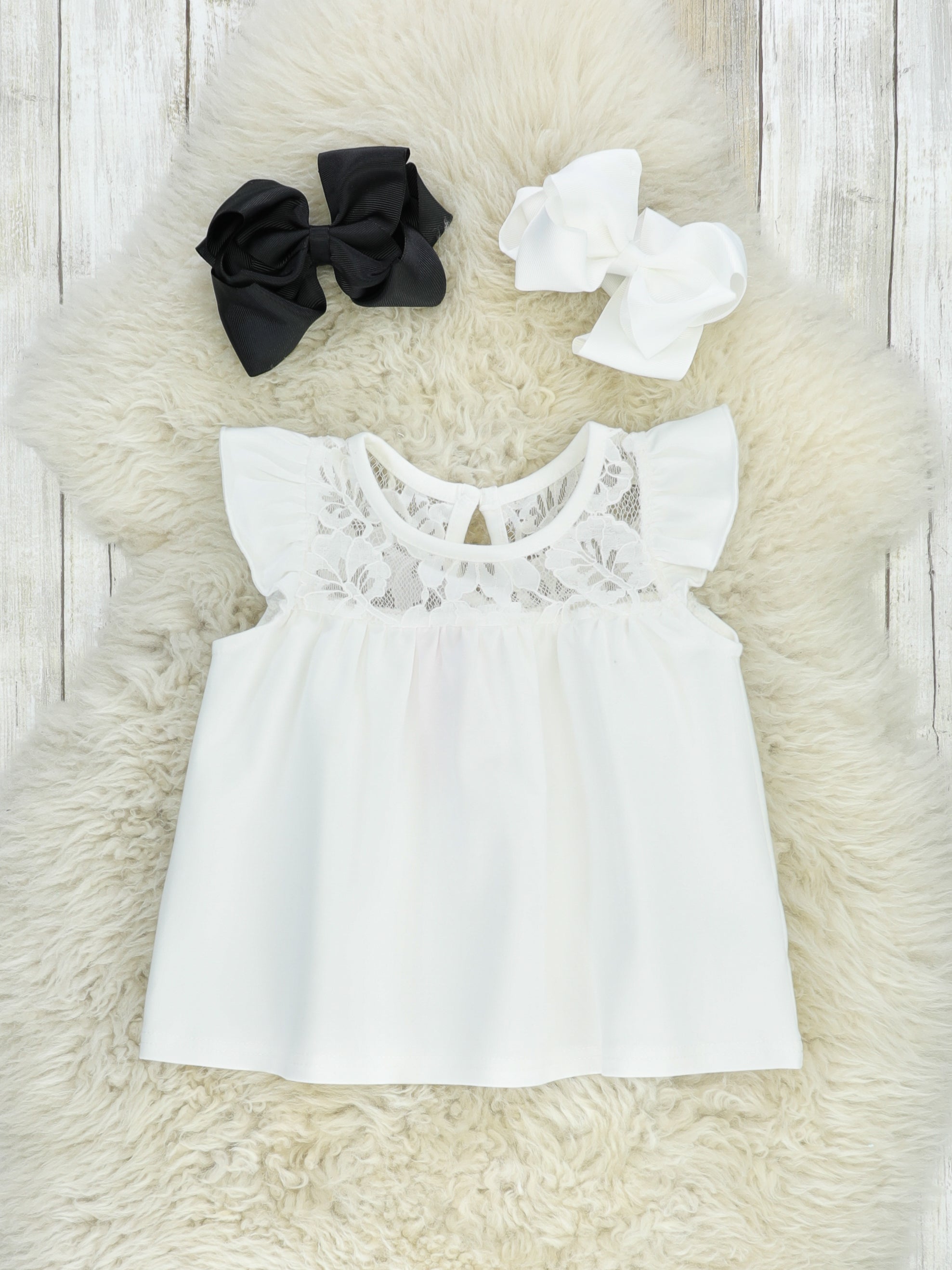 Cotton Bow Back Button Ruffle Sleeve Peplum Top - Light Colors