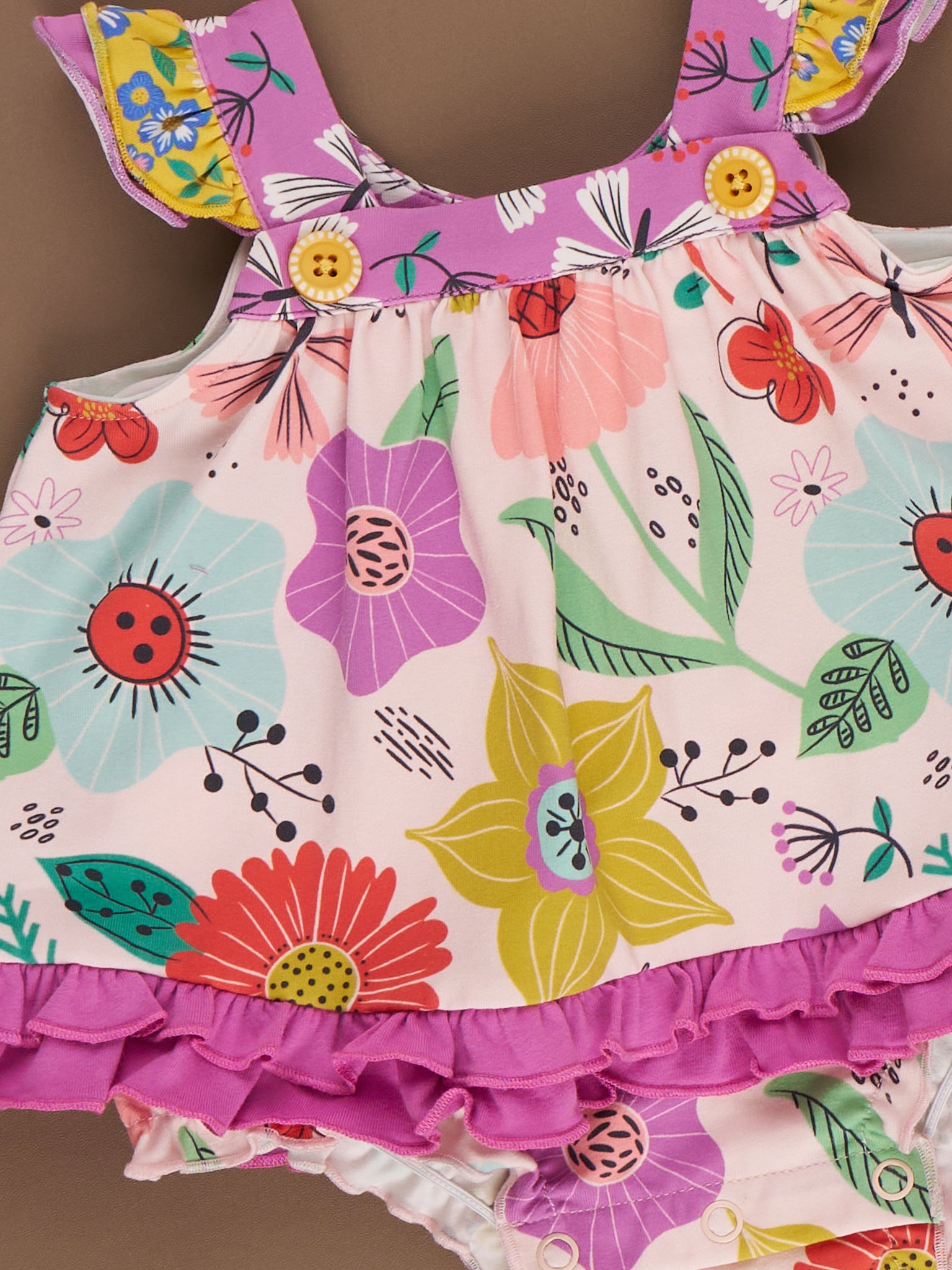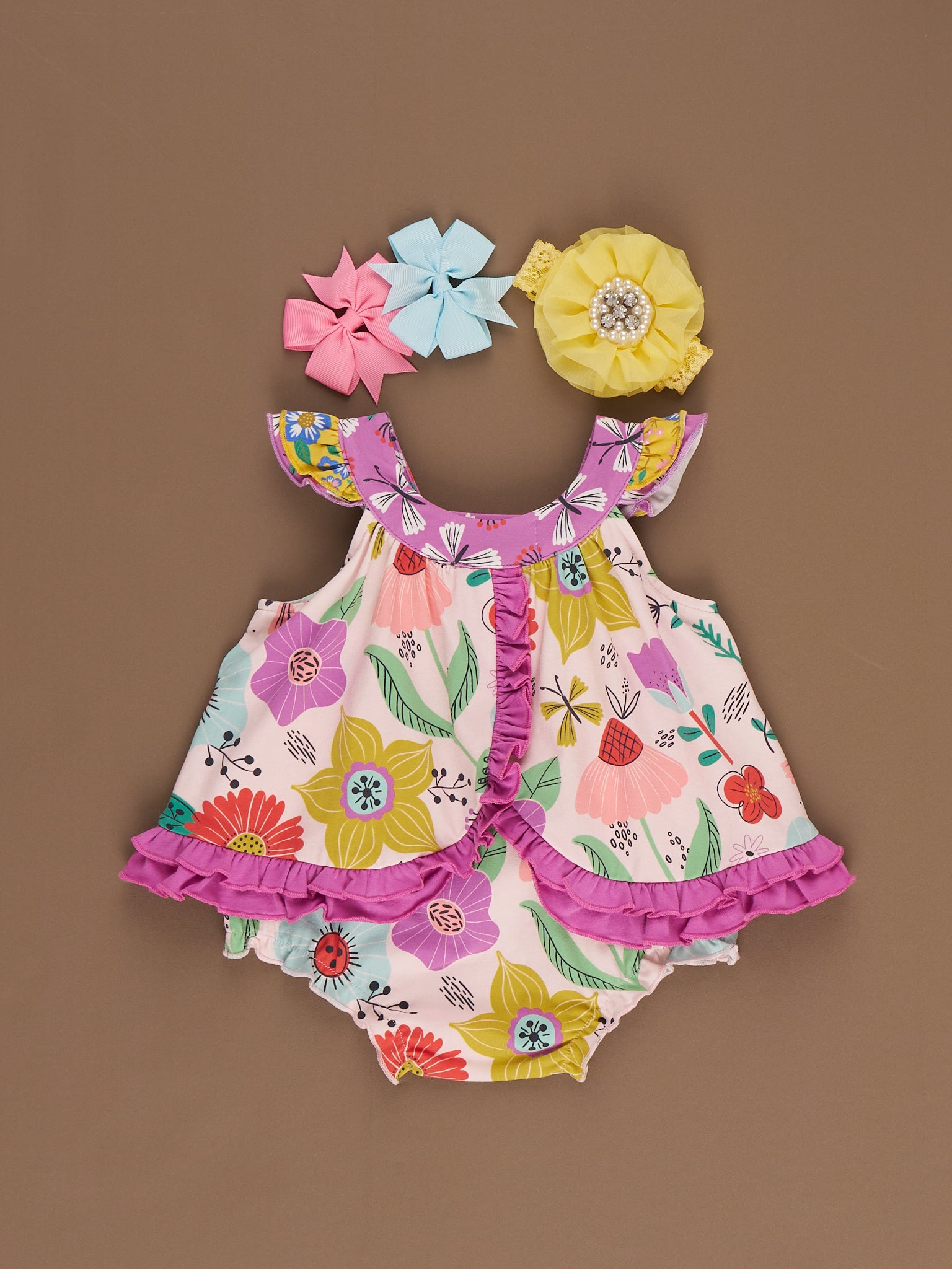 Step into the sweetness of spring with the Butterfly Blooms Collection. Wrap your little one in the gentle charm of the Butterfly Blooms Bubble Romper. This exclusive collection from Marie Nicole Clothing draws inspiration from gardens in full bloom and butterflies dancing spring mornings filled with drifting butterflies, soft breezes, and flower-covered meadows, this bubble romper brings a soft, whimsical touch to your little one’s everyday wardrobe.
