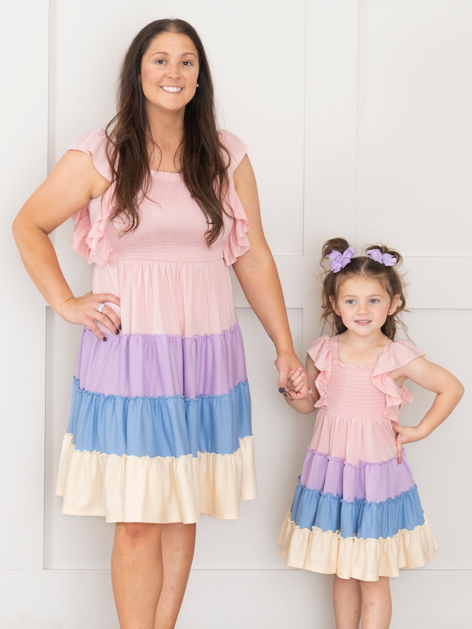 Mom & Me Tiered Color Blocked Pastel Dress