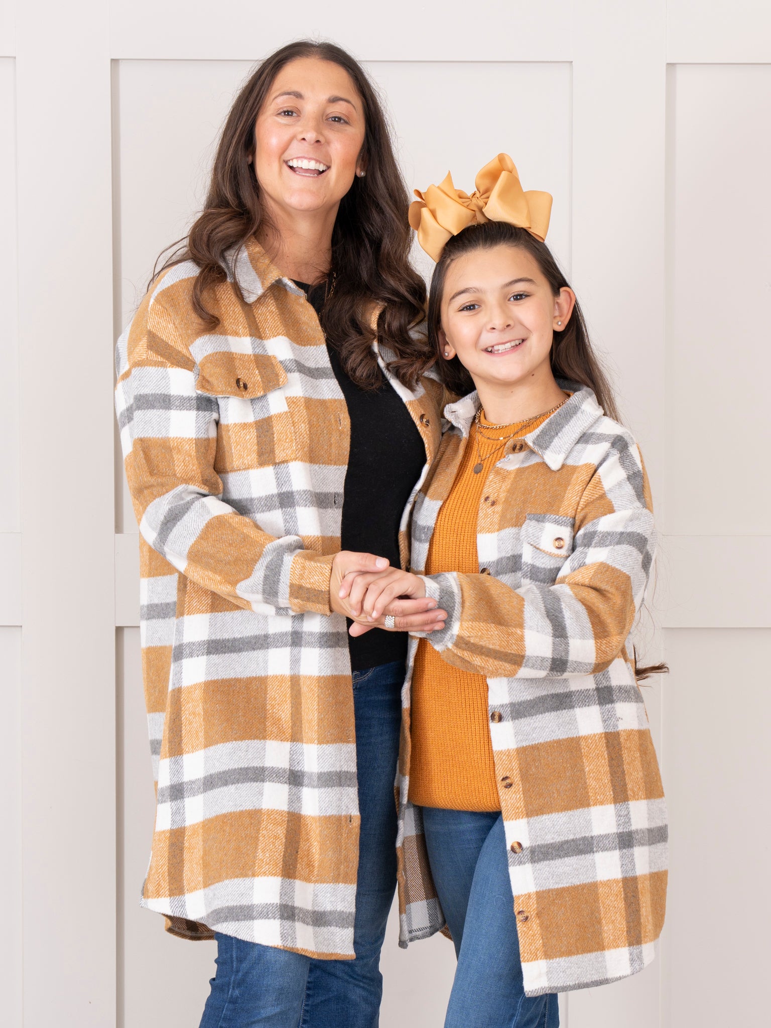 Mom & Me Long Flannel Shacket - Mustard & Grey Plaid