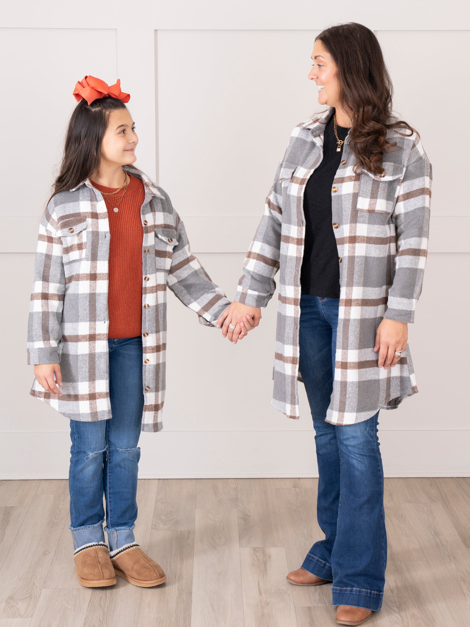 Mom & Me Long Flannel Shacket - Grey Plaid