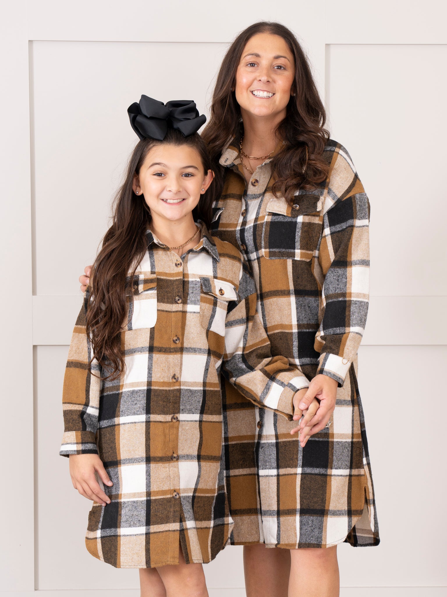Mom & Me Long Flannel Shacket - Brown & Black Plaid