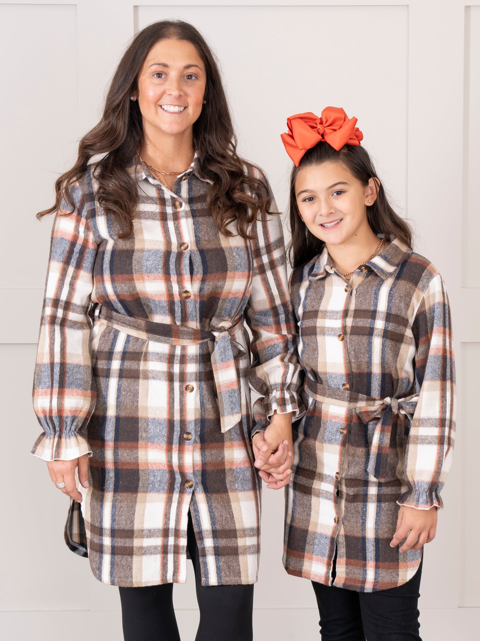 Mom & Me Long Flannel Tunic - Dark Brown & Rust Plaid