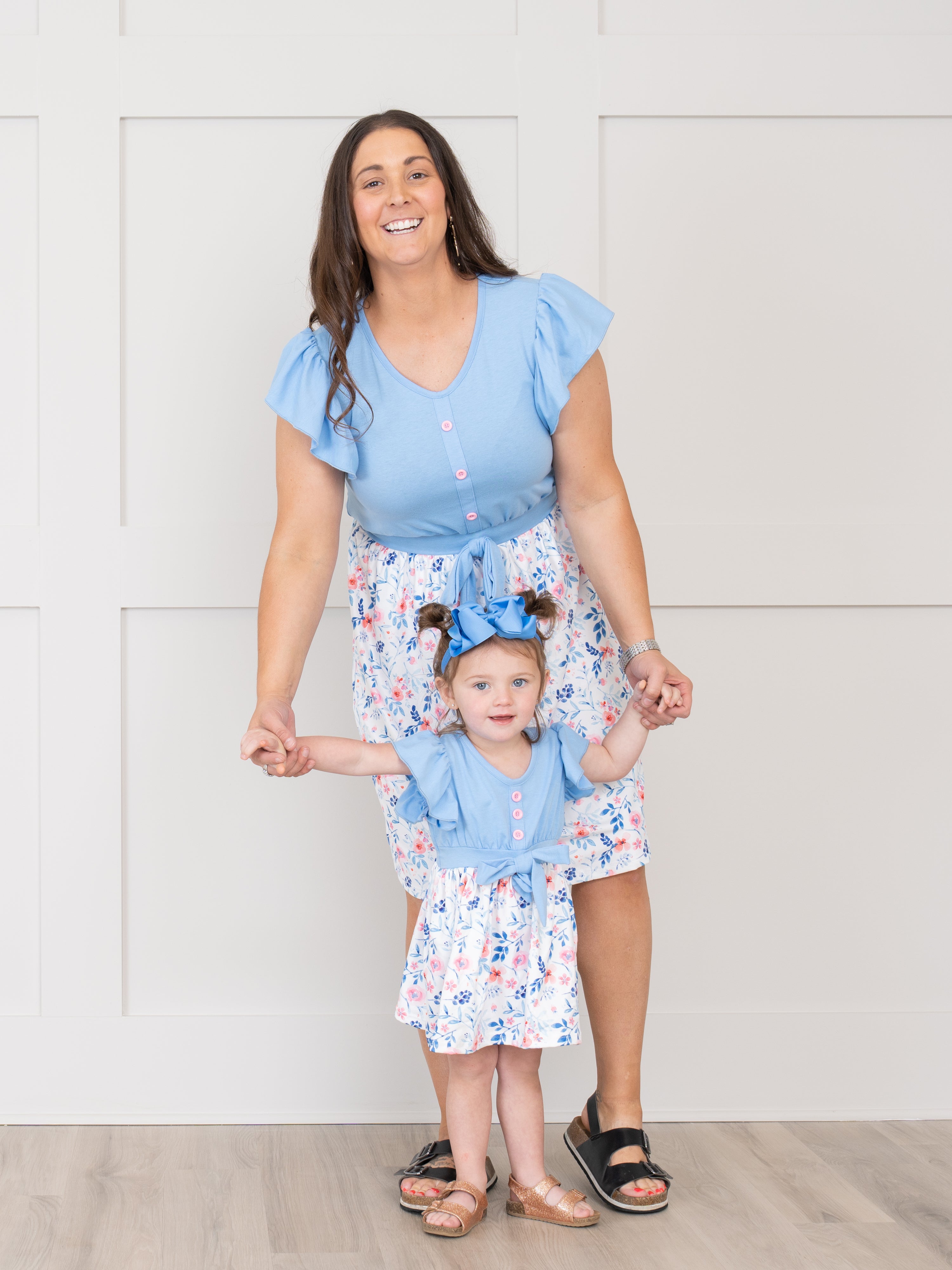 Mom & Me Tiered Color Blocked Blue Dress
