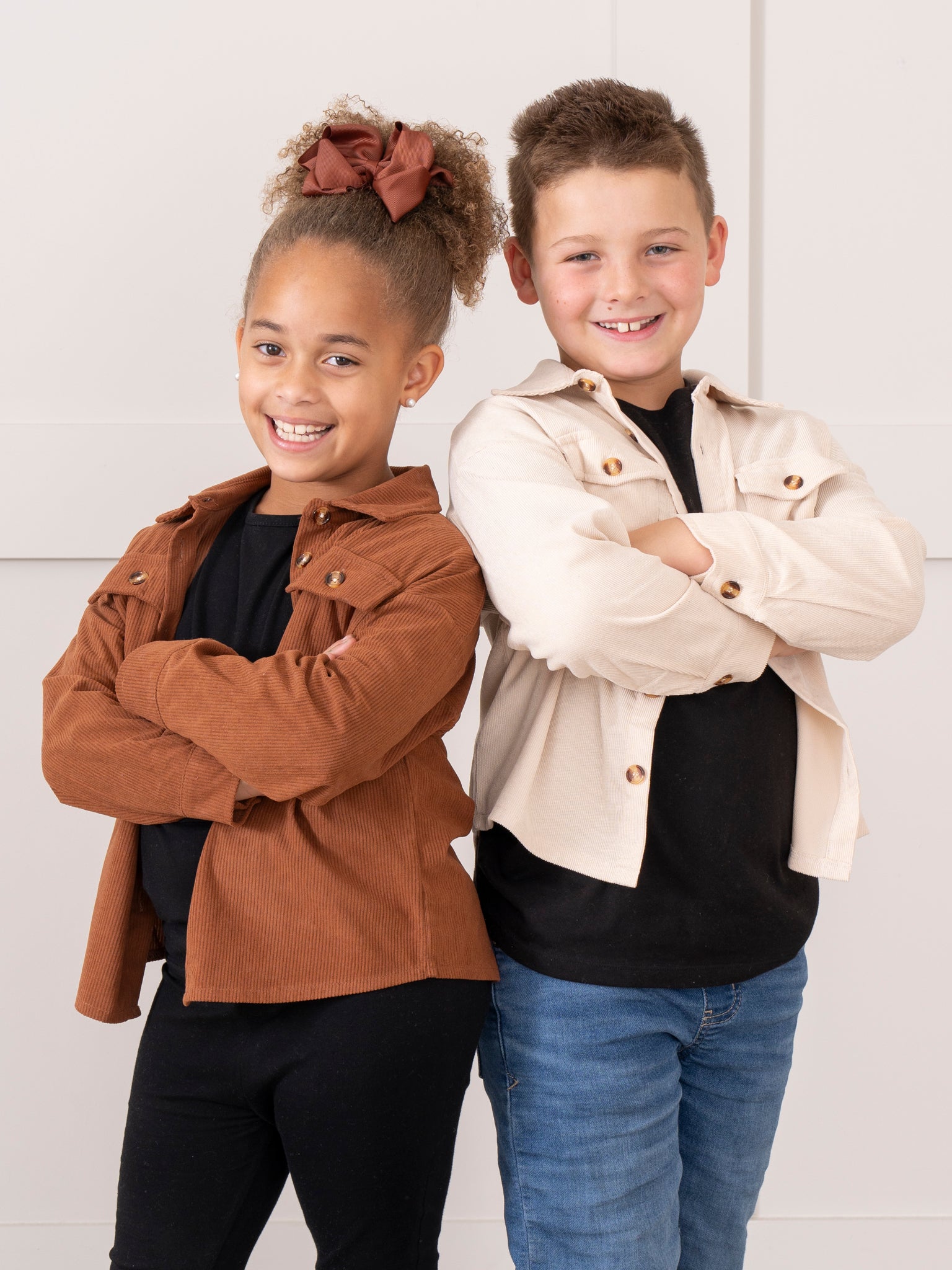 Get the best of both worlds with the Mom & Me Corduroy Shacket. This playful shacket (shirt/jacket hybrid) features a mom & me design, perfect for matching with your little one. The button front closure and two chest pockets add both style and convenience.