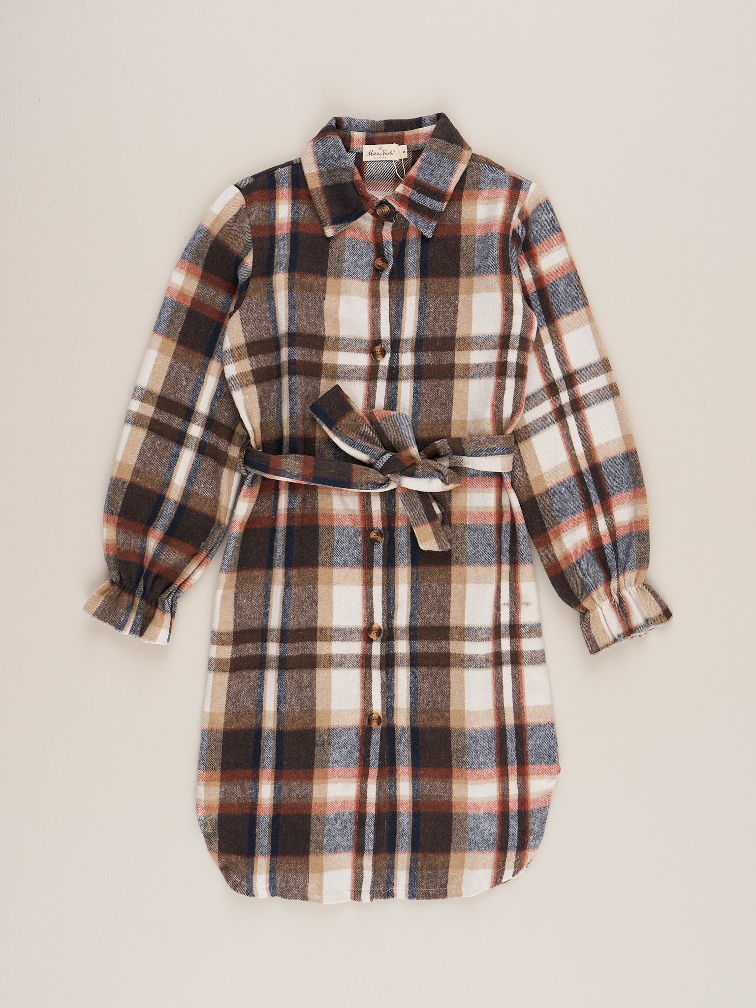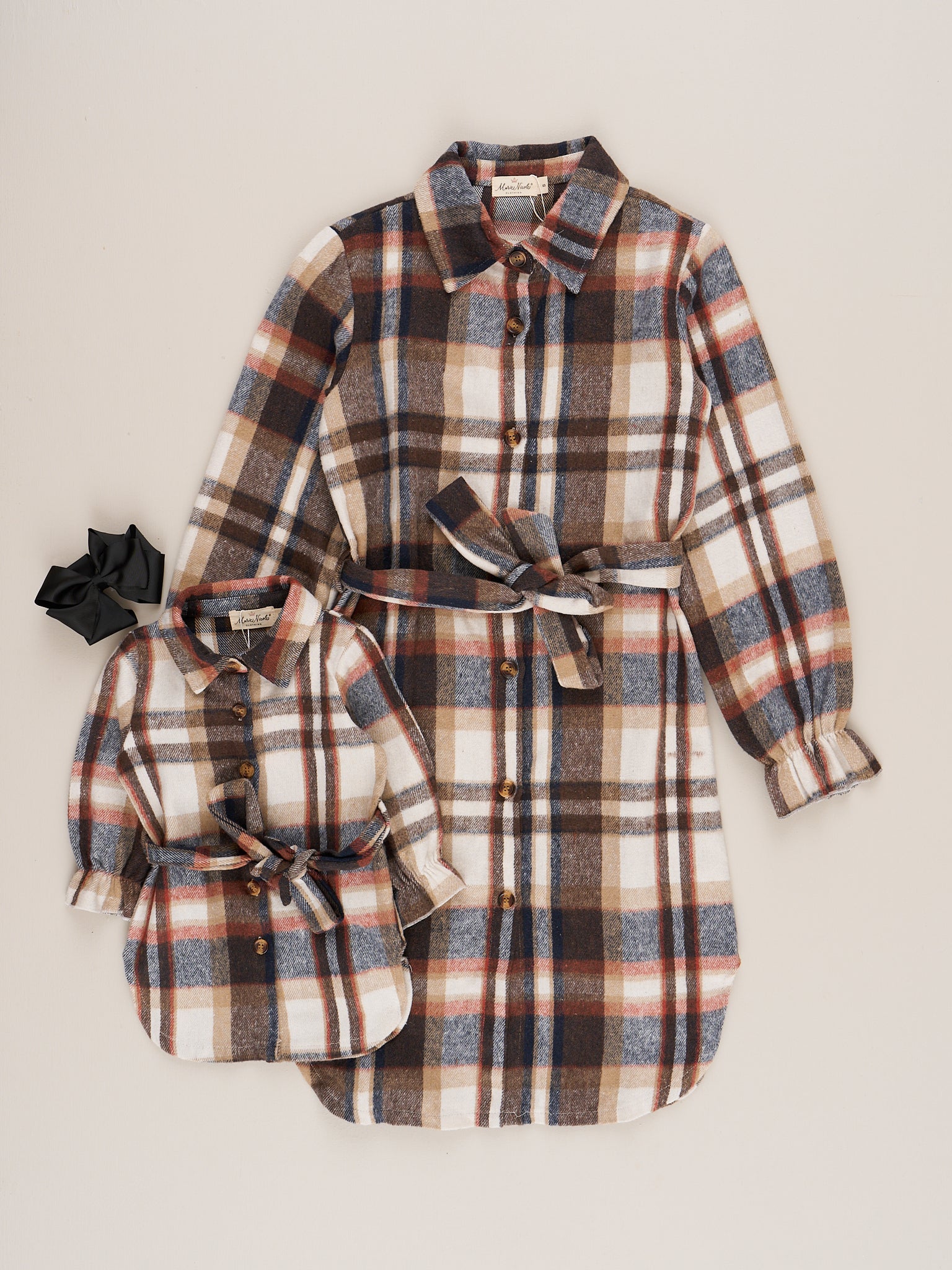 Mom & Me Long Flannel Tunic - Dark Brown & Rust Plaid