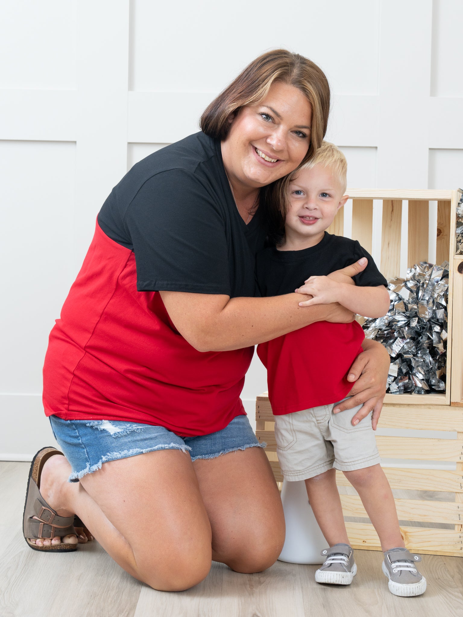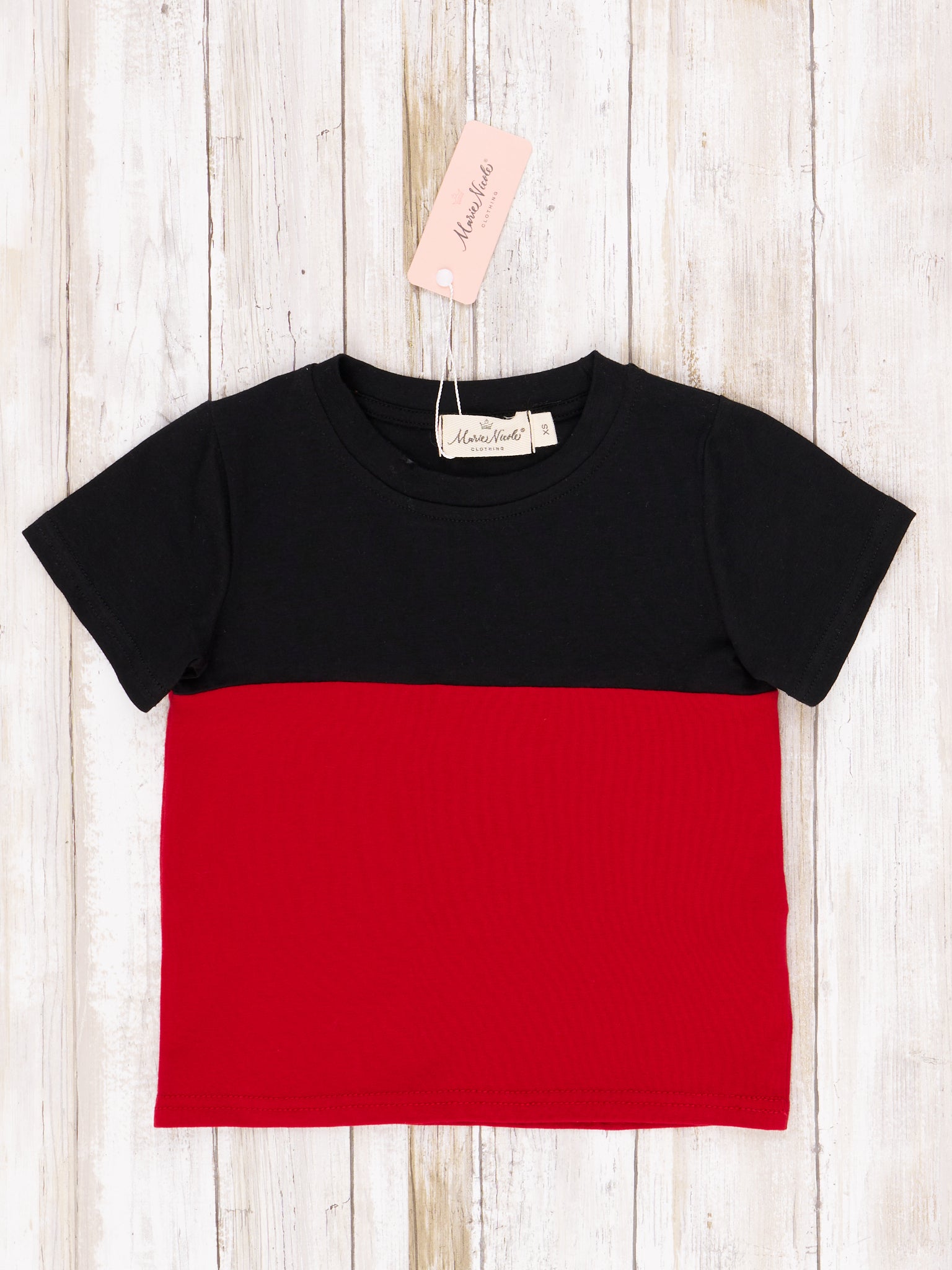 Stay stylish with this family-friendly collegiate set! This Red & Black Shirt comes in a fresh color block design and is perfect for any family outing. Get your matching set now and show your sports-themed pride!