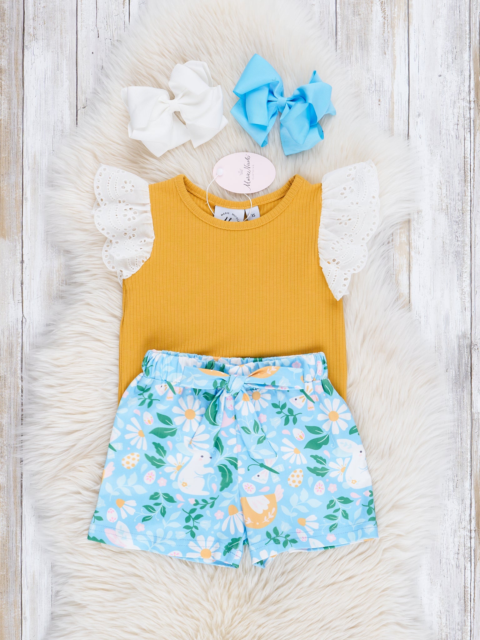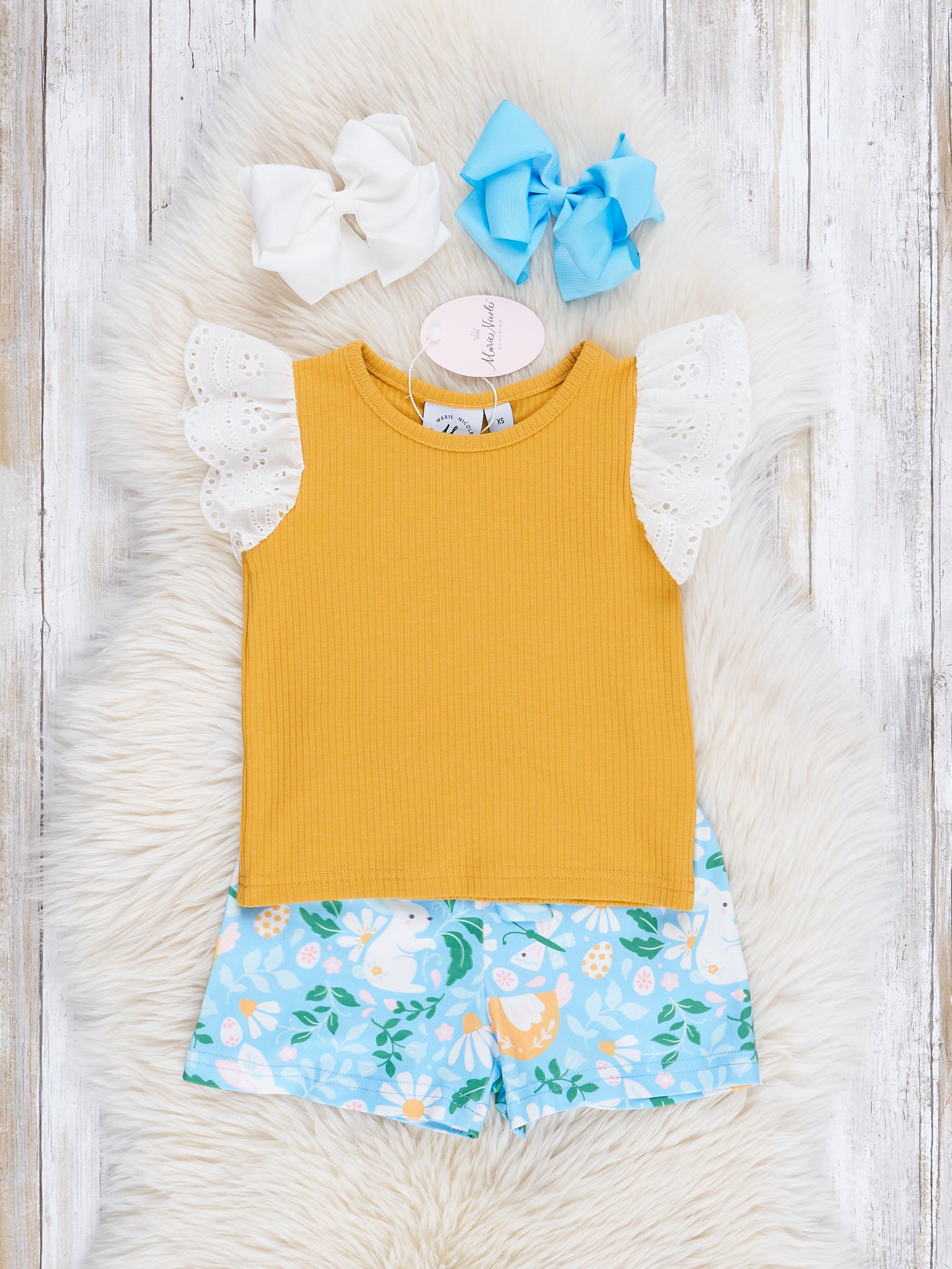 Mustard Bunny Daisy Tulle Ruffle Dress