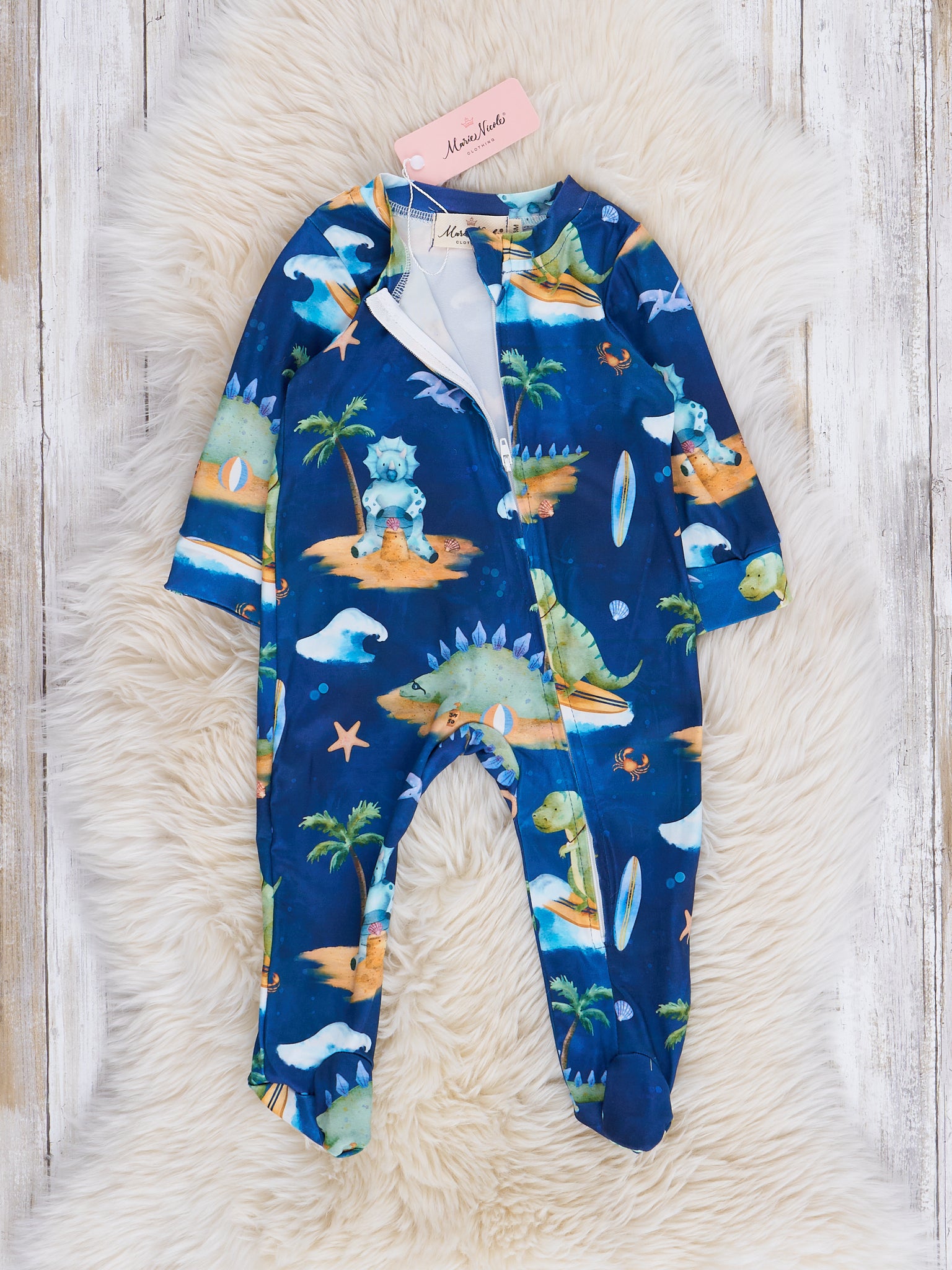 Navy Beach Dinosaur Footed Sleeper Pajamas
