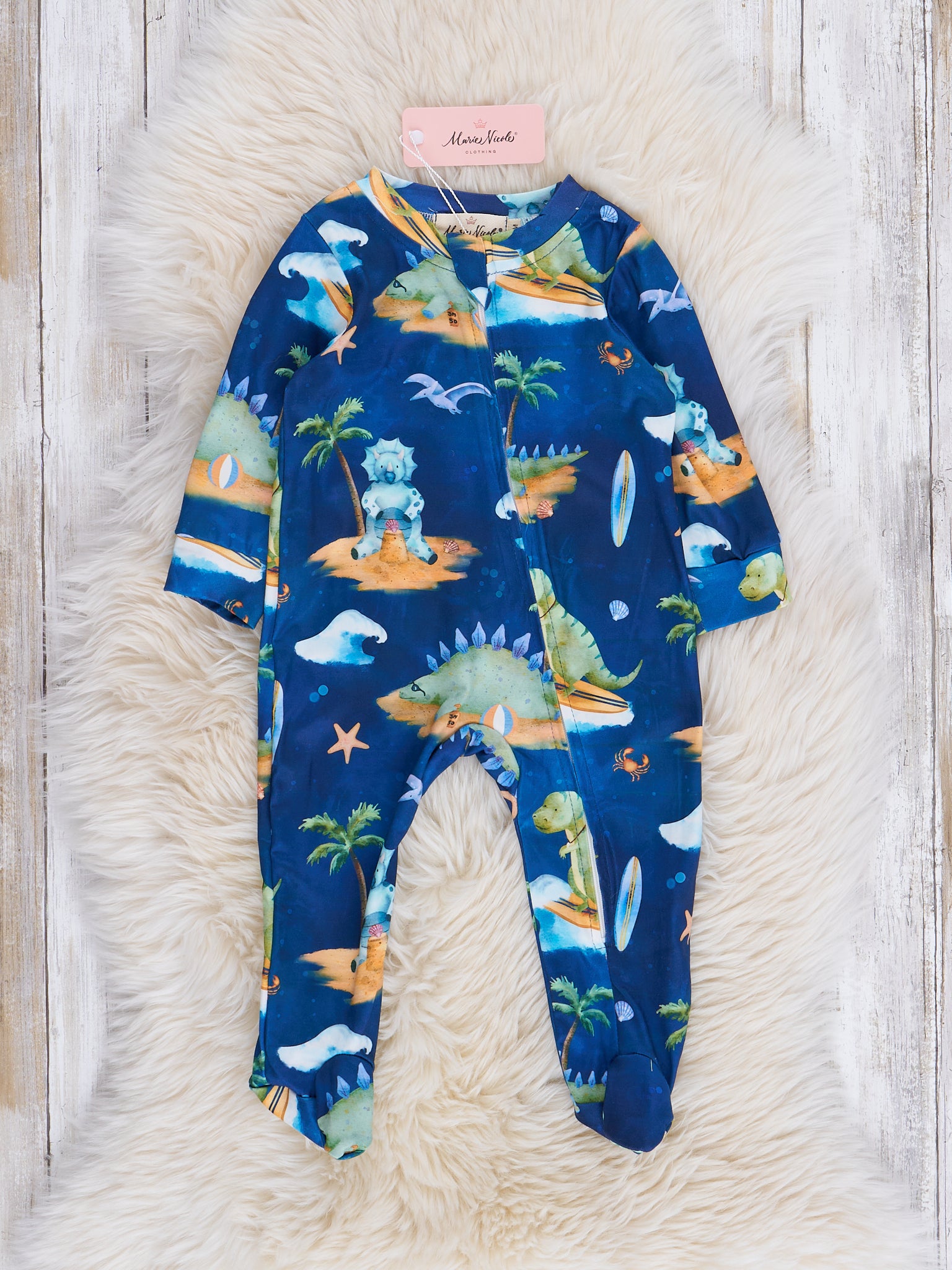 Navy Beach Dinosaur Footed Sleeper Pajamas