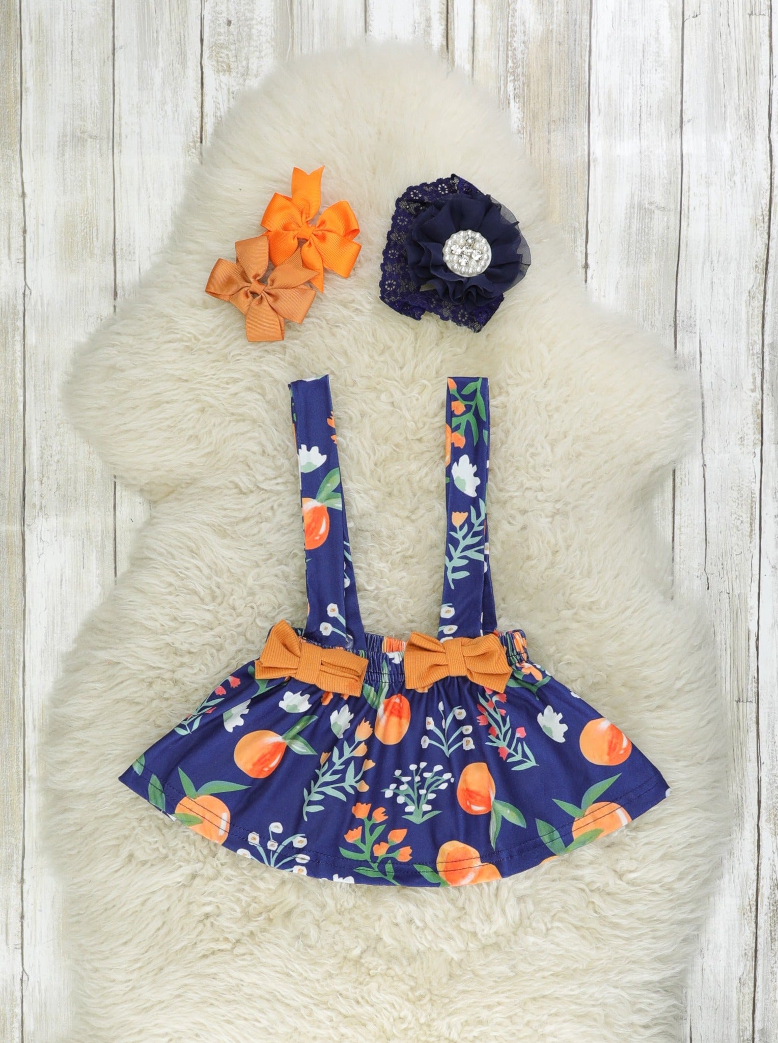 Navy & Burnt Orange Persimmon Suspender Skirt Set
