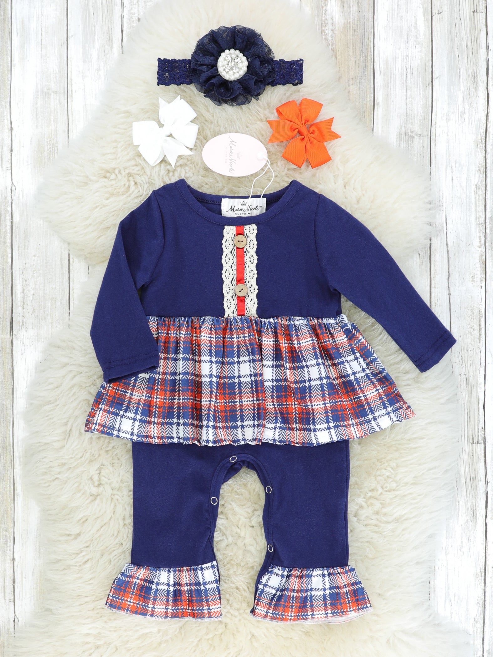 Navy & Orange Plaid Romper
