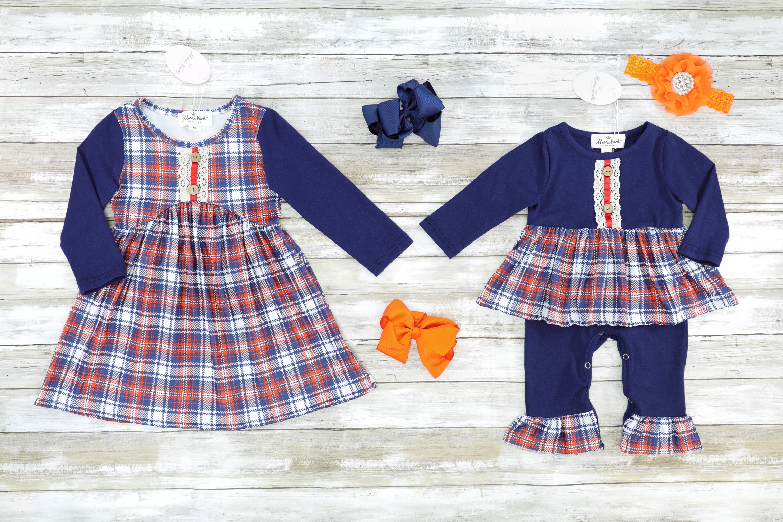 Home › Navy & Orange Plaid Sister Set