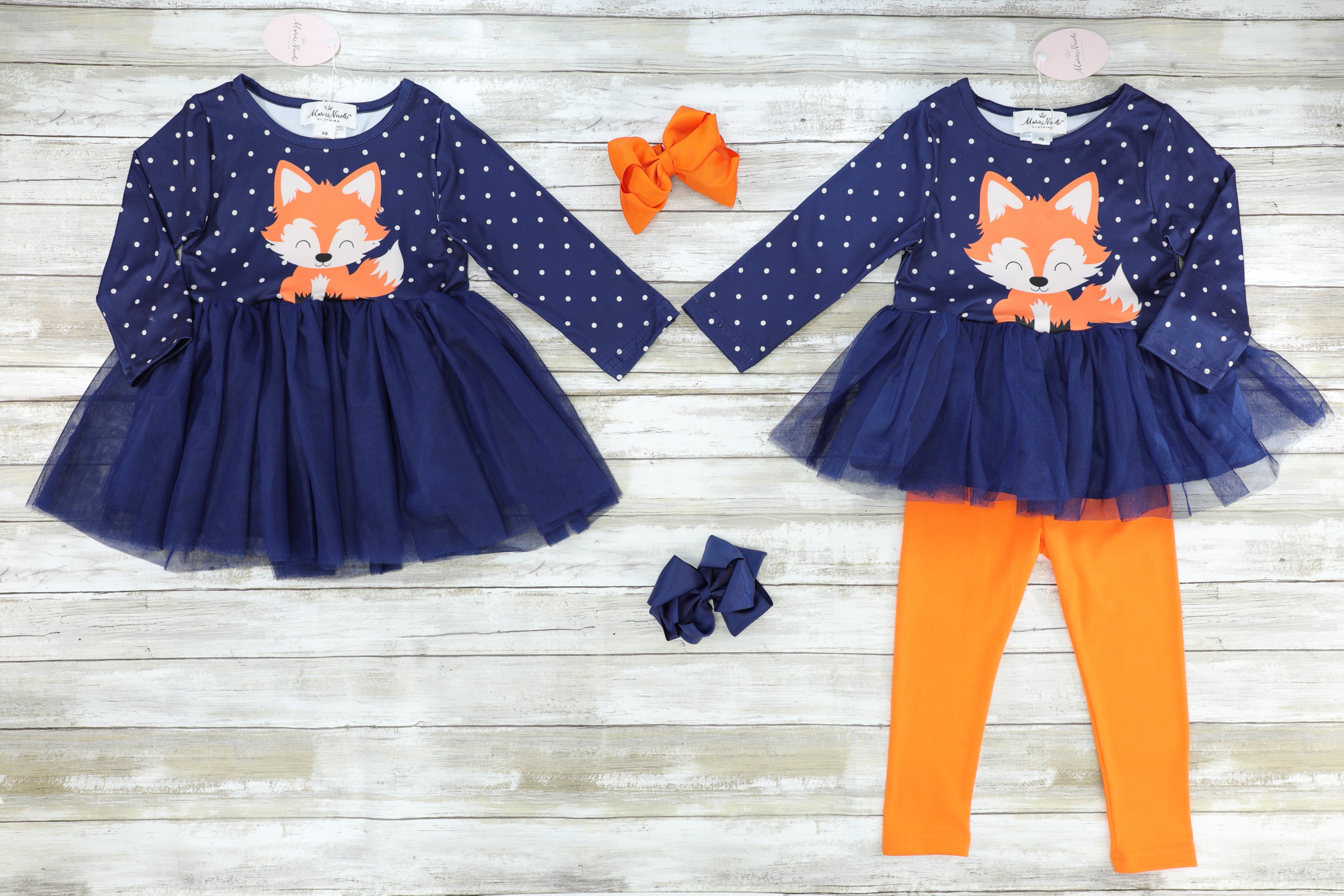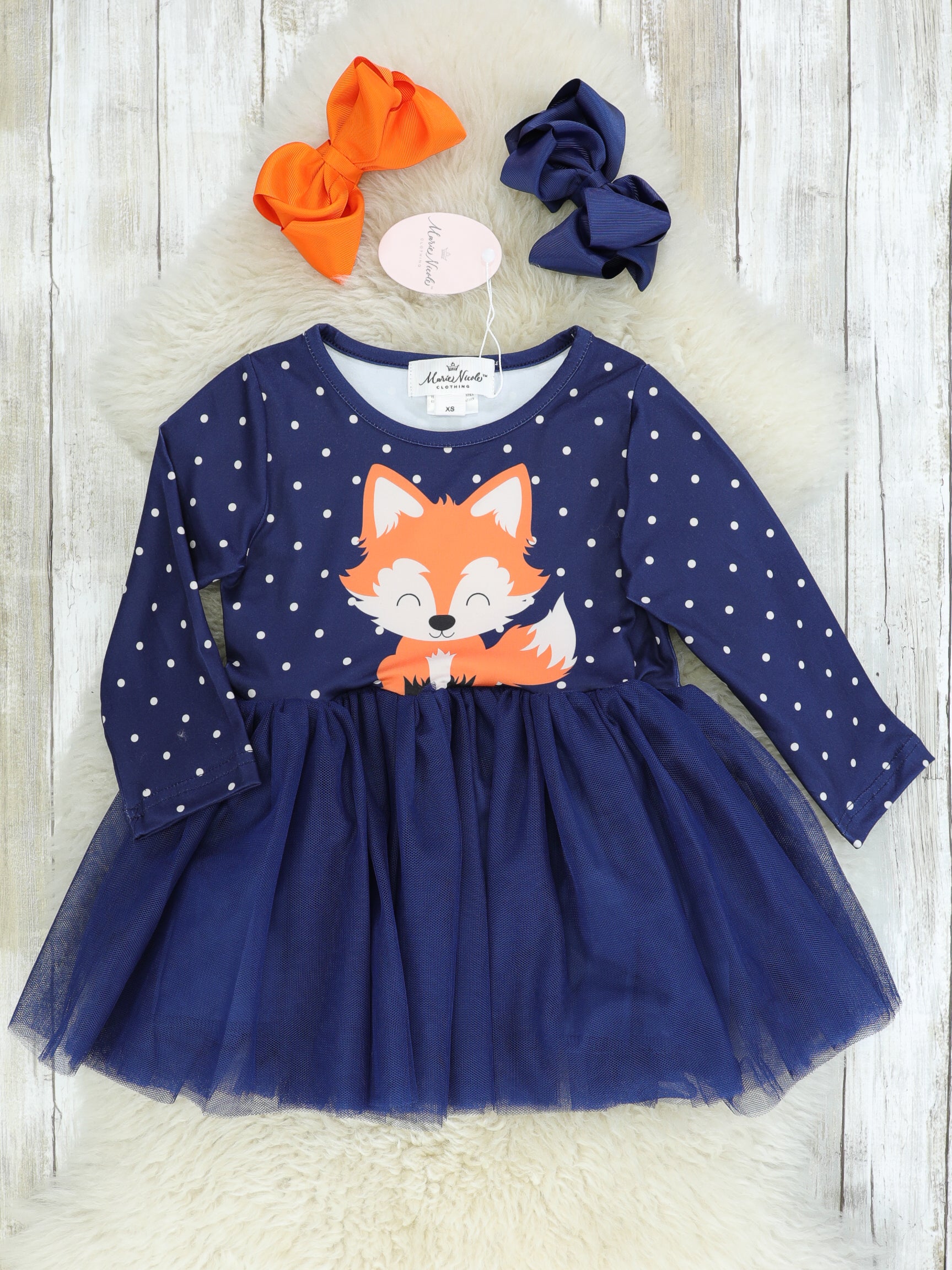 Home › Navy Polka Dot Fox Tulle Sister Set