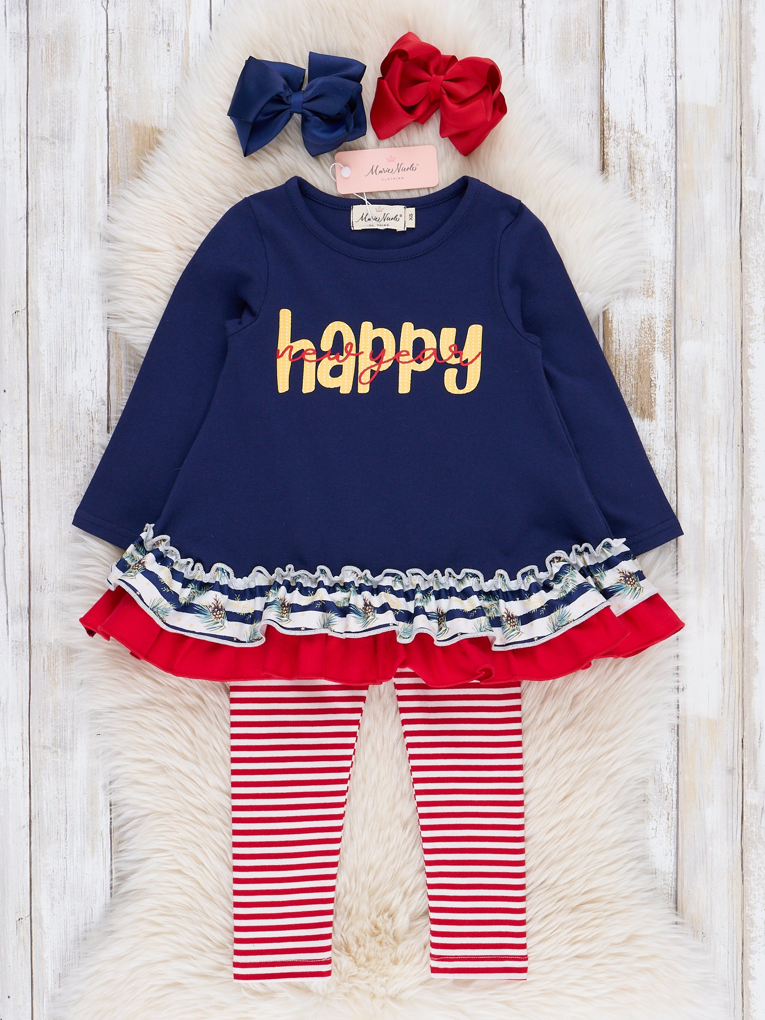 Navy & Red Stripes Happy New Year Ruffle Outfit