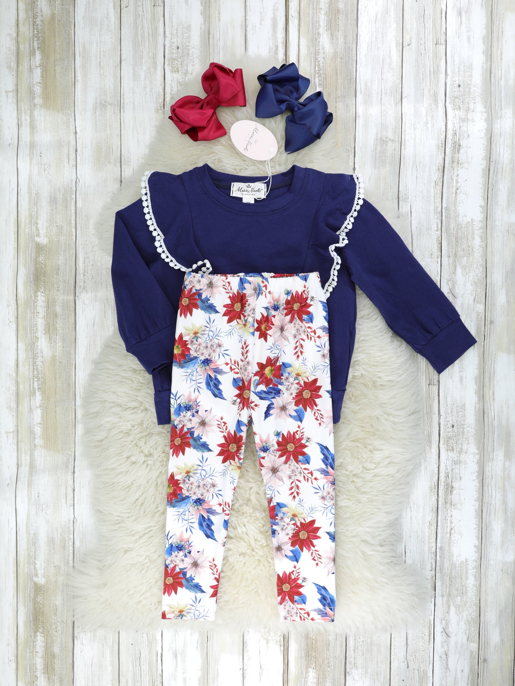 Navy Roses Ruffle Outfit