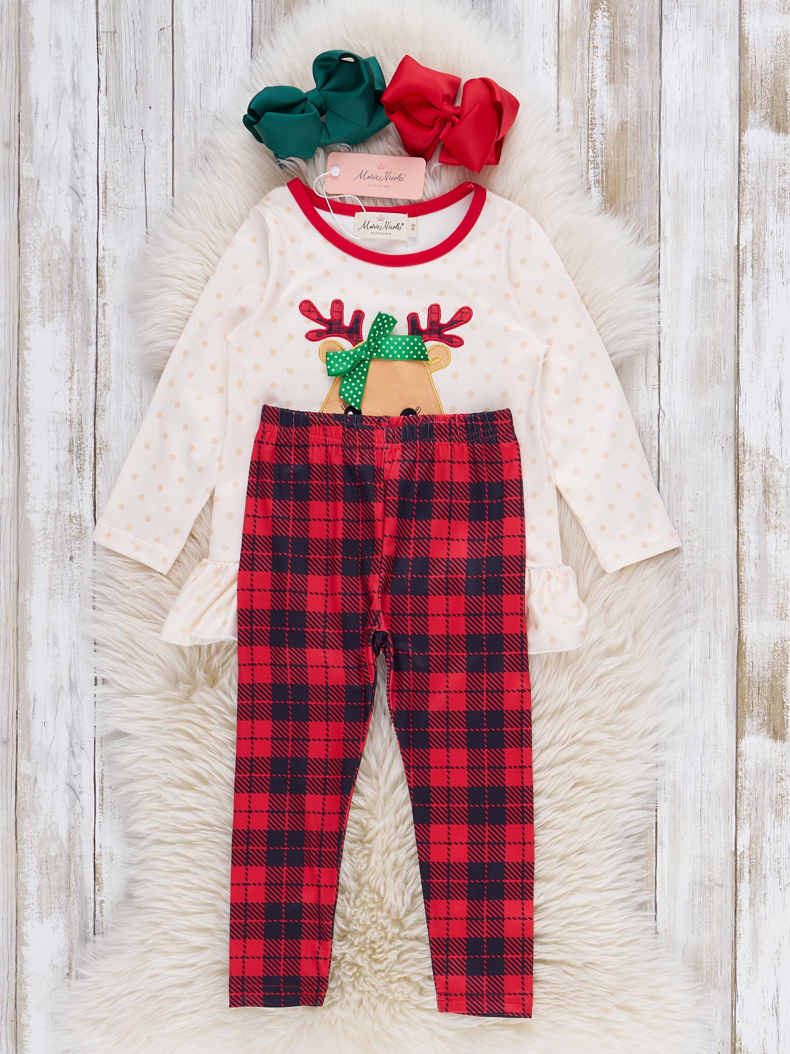 Blue & Pink Checkers "Christmas Crew" Ruffle Outfit