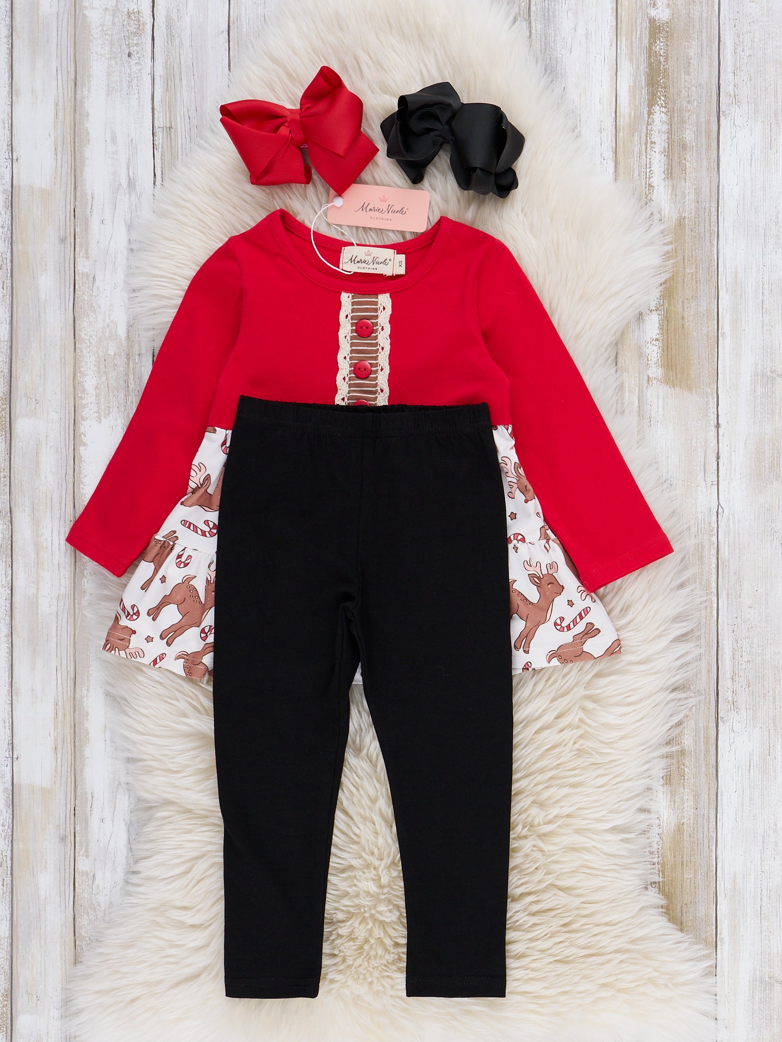 Embroidered Plaid Christmas Tree Lace Trim Outfit