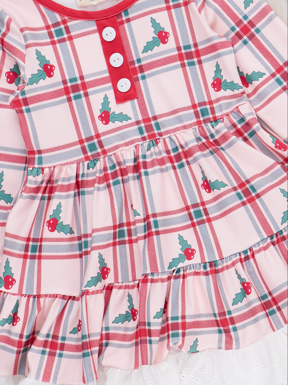 Embroidered Plaid Christmas Tree Lace Trim Outfit