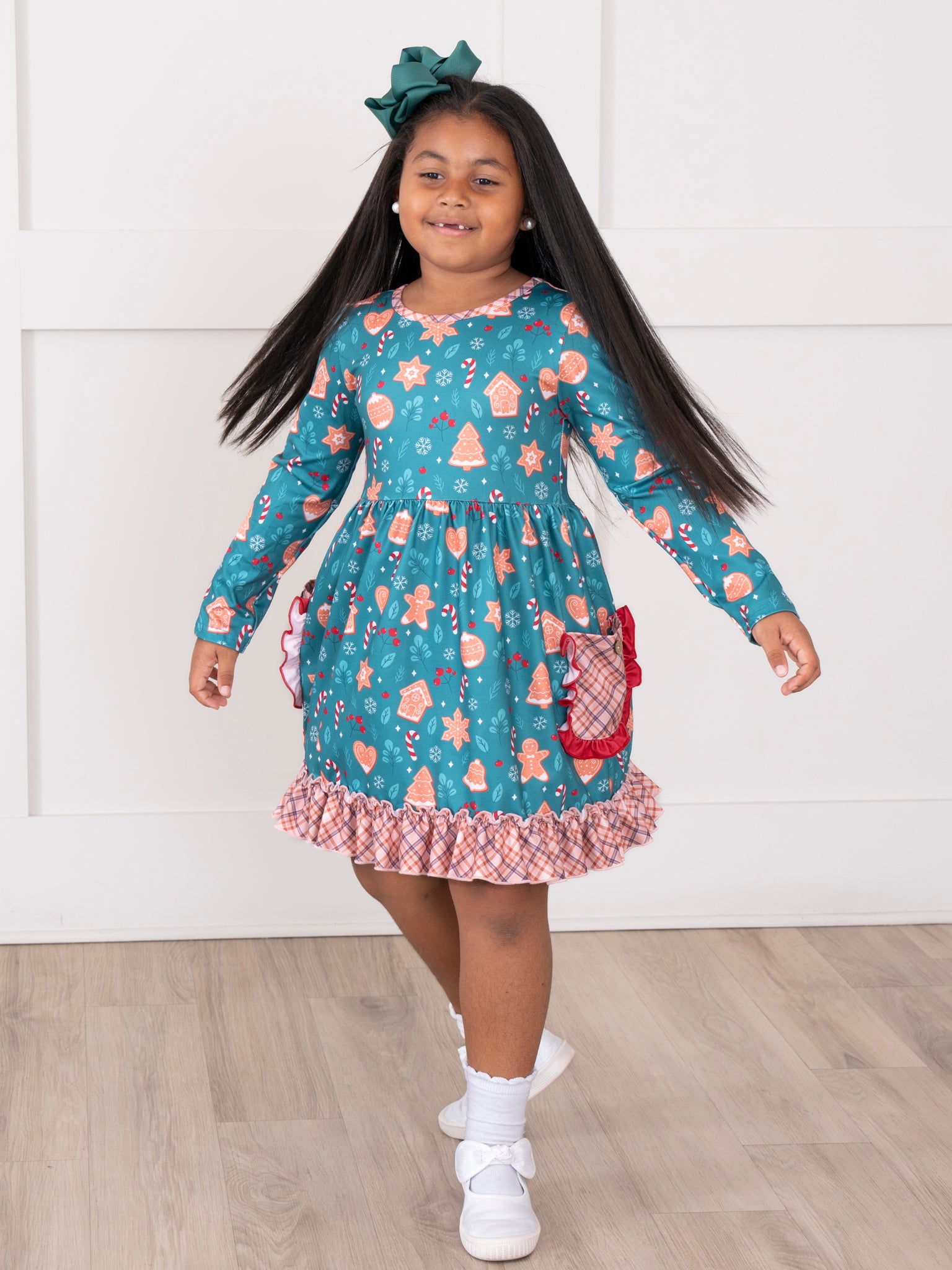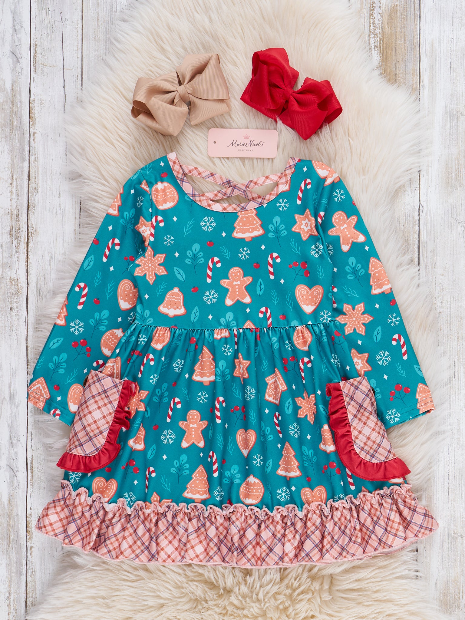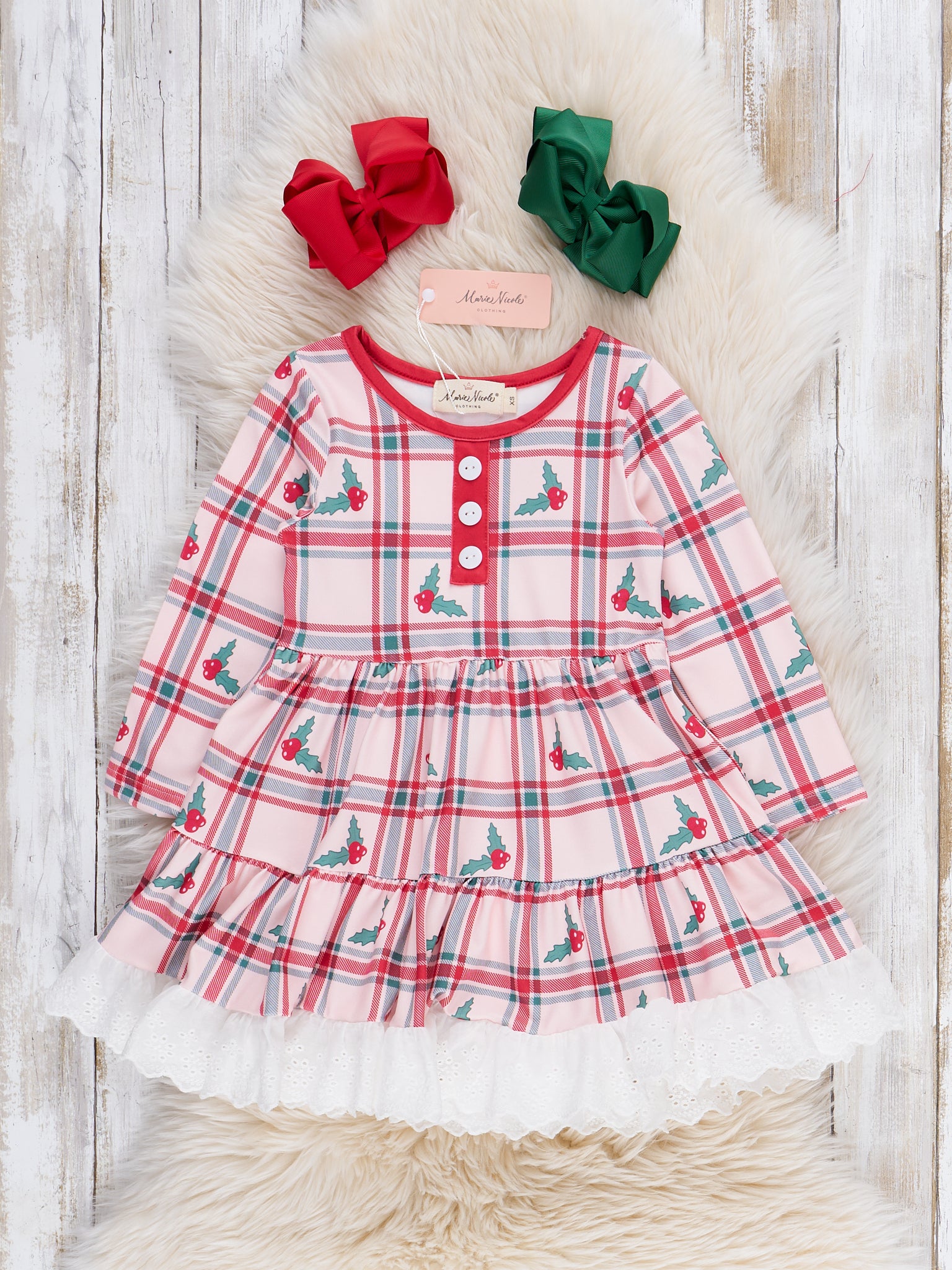 Blue & Pink Checkers "Christmas Crew" Ruffle Outfit