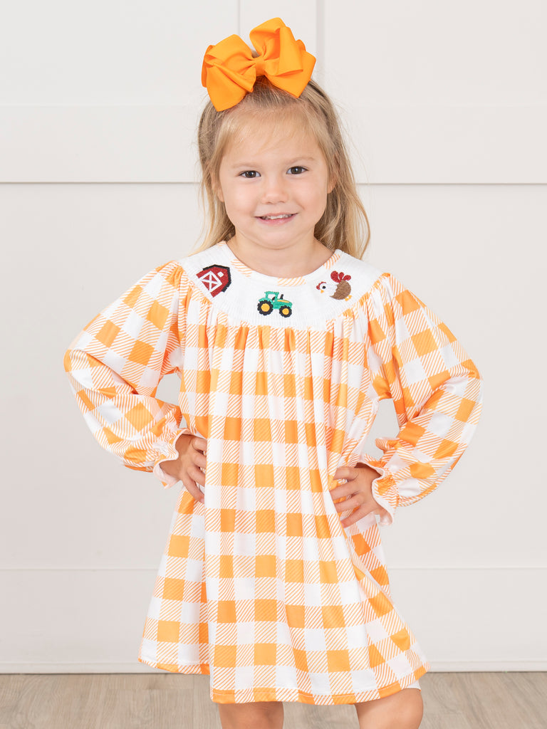 Pumpkin Floral Breeze Smocked Ruffle Dress