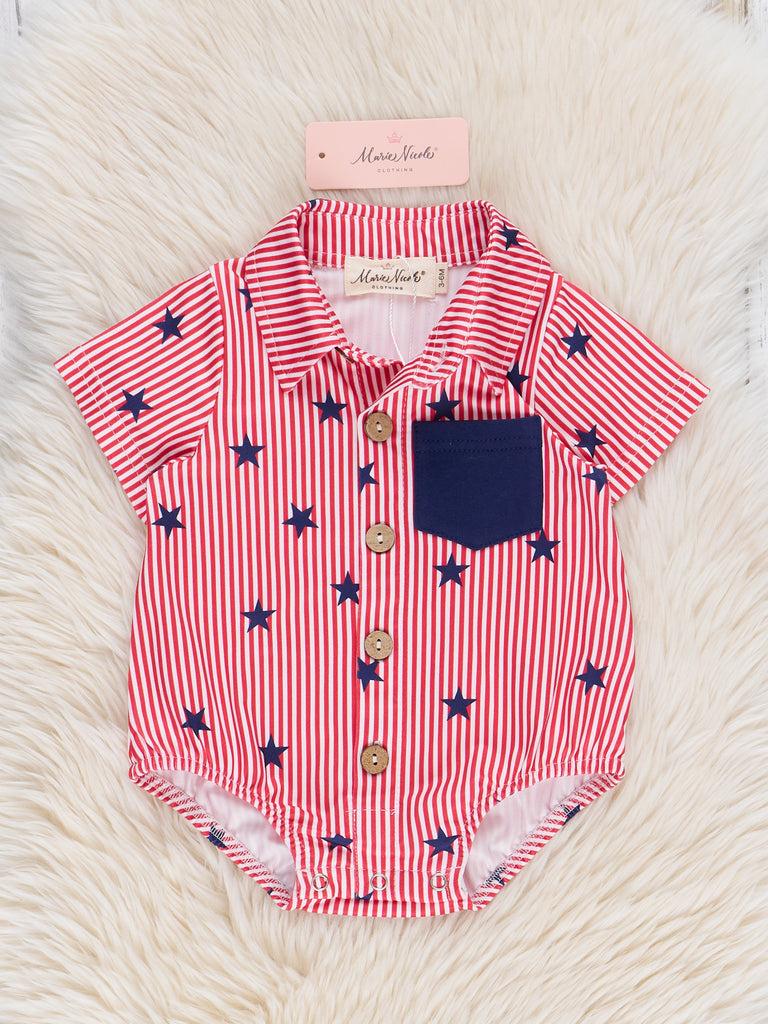 Heartfelt Patch Embroidered Cotton Button-Up Onesie