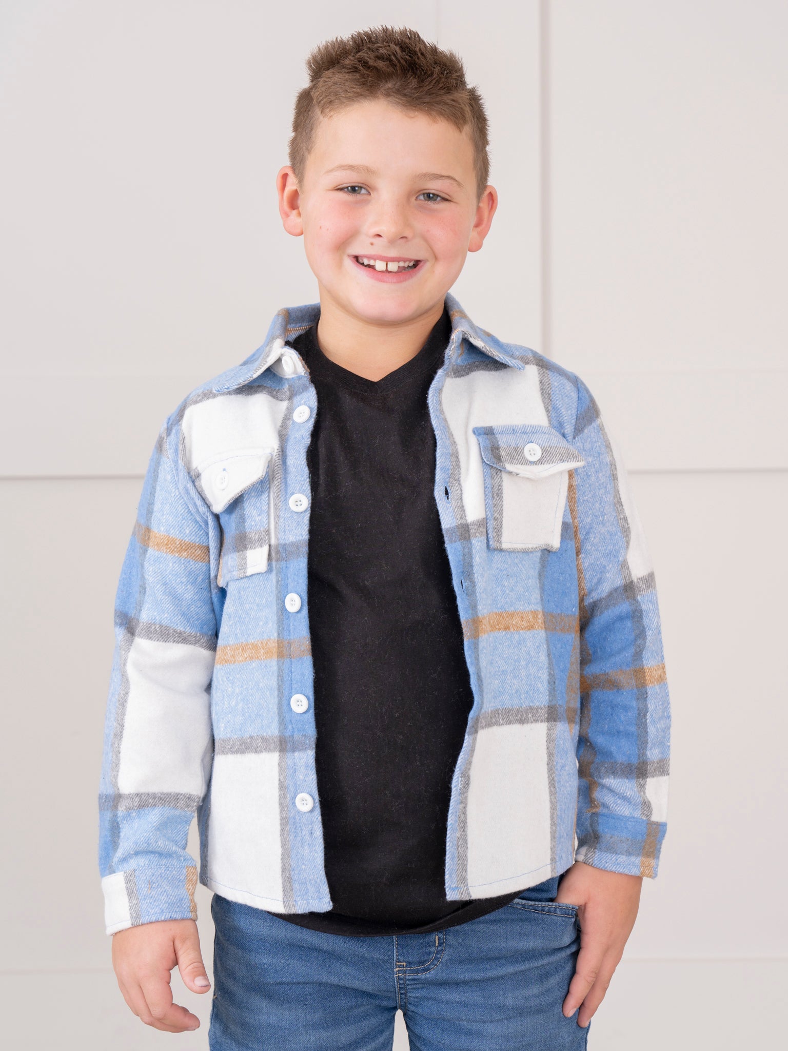 Midnight Blue Plaid Button-Up Flannel Shirt