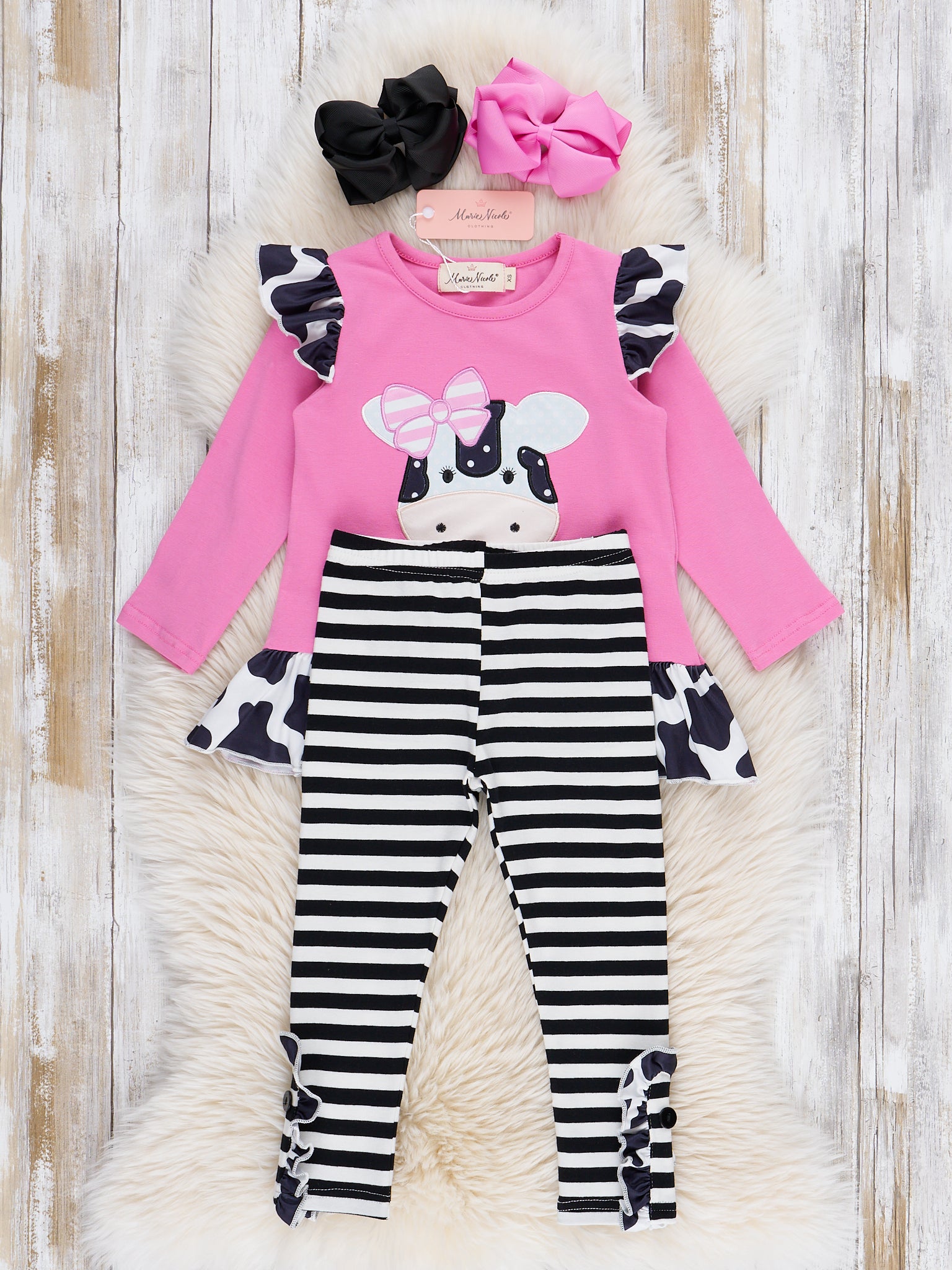 Lil’ Moo Ruffle Embroidered Cow Outfit