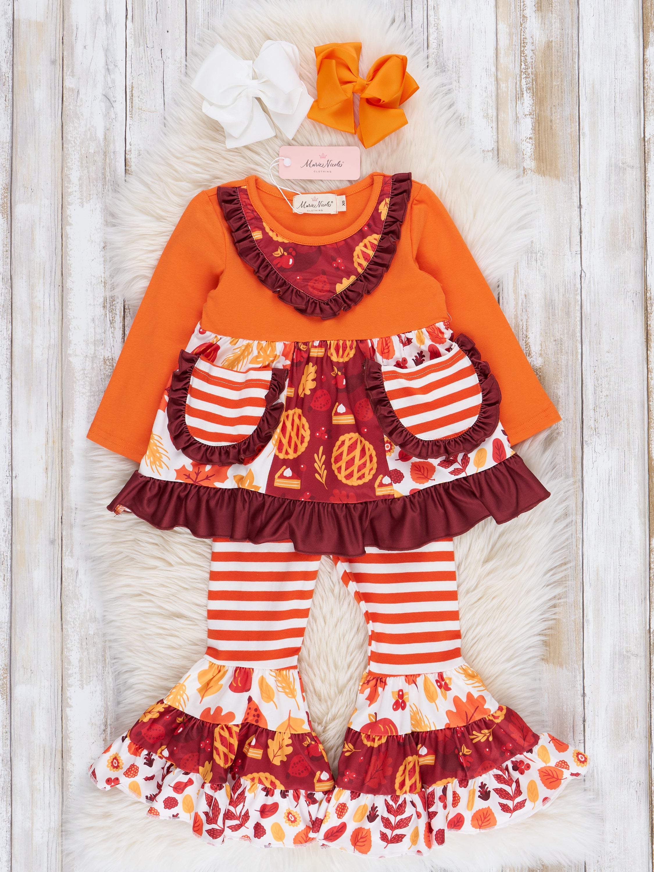 Orange Ruffle Floral Chicken Bell Bottom Outfit