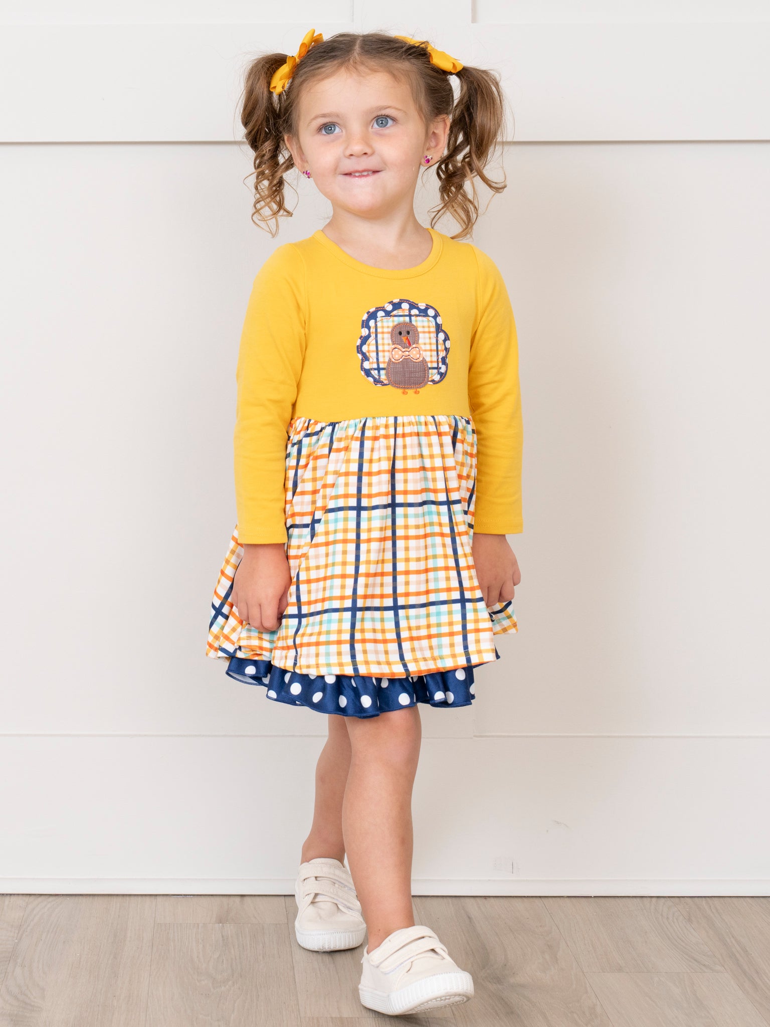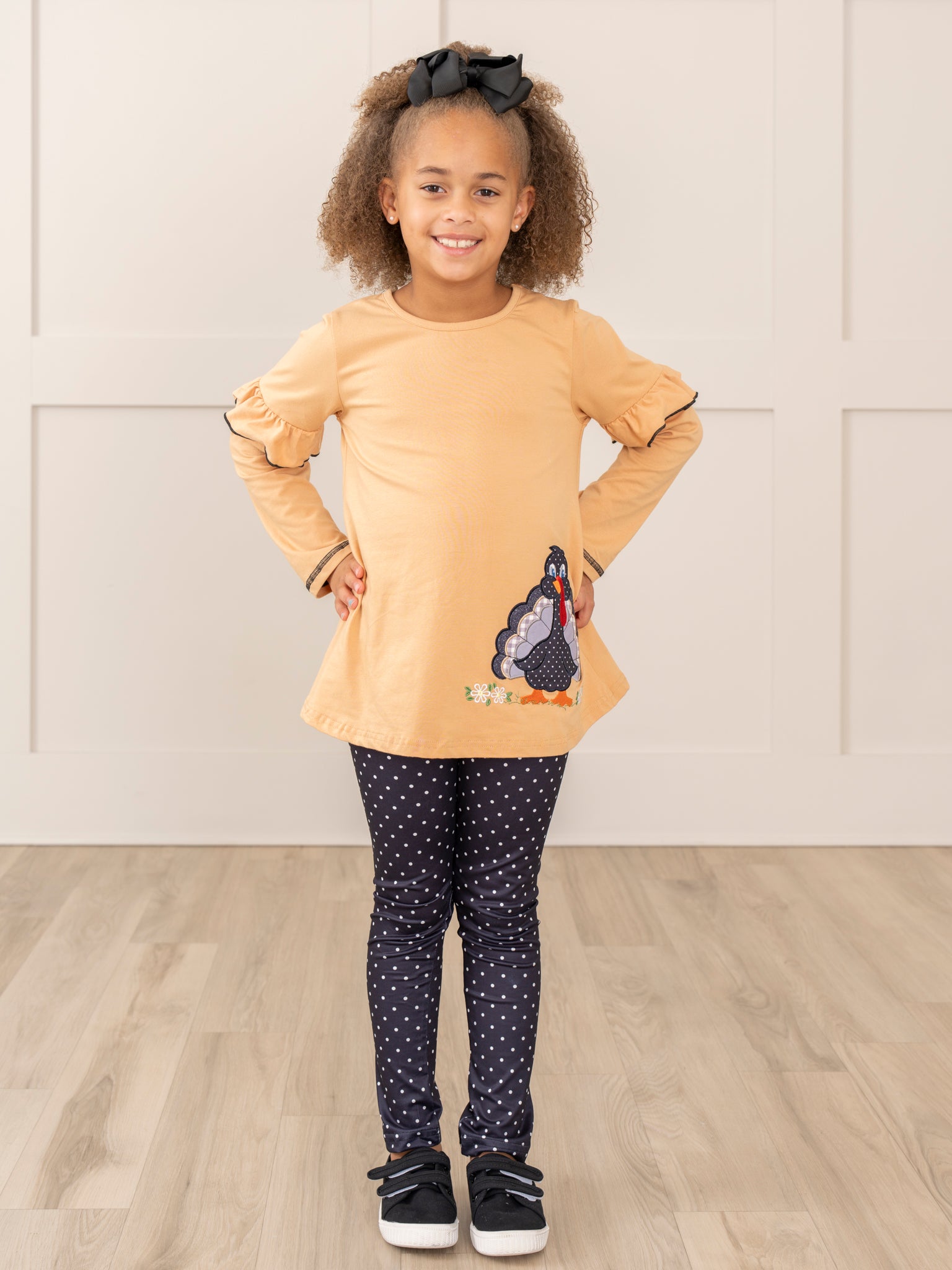 Tan & Black Embroidered Turkey Ruffle Outfit