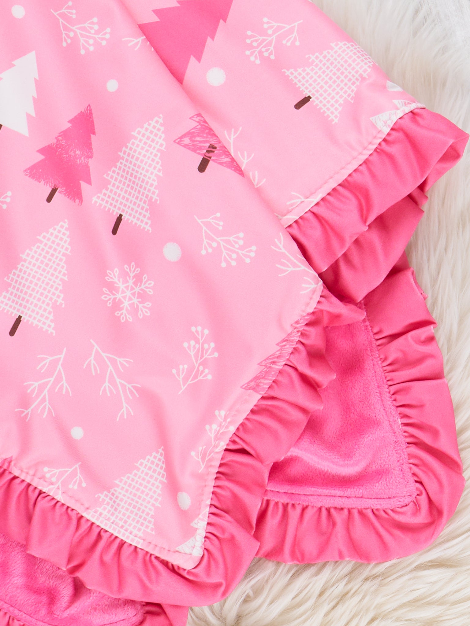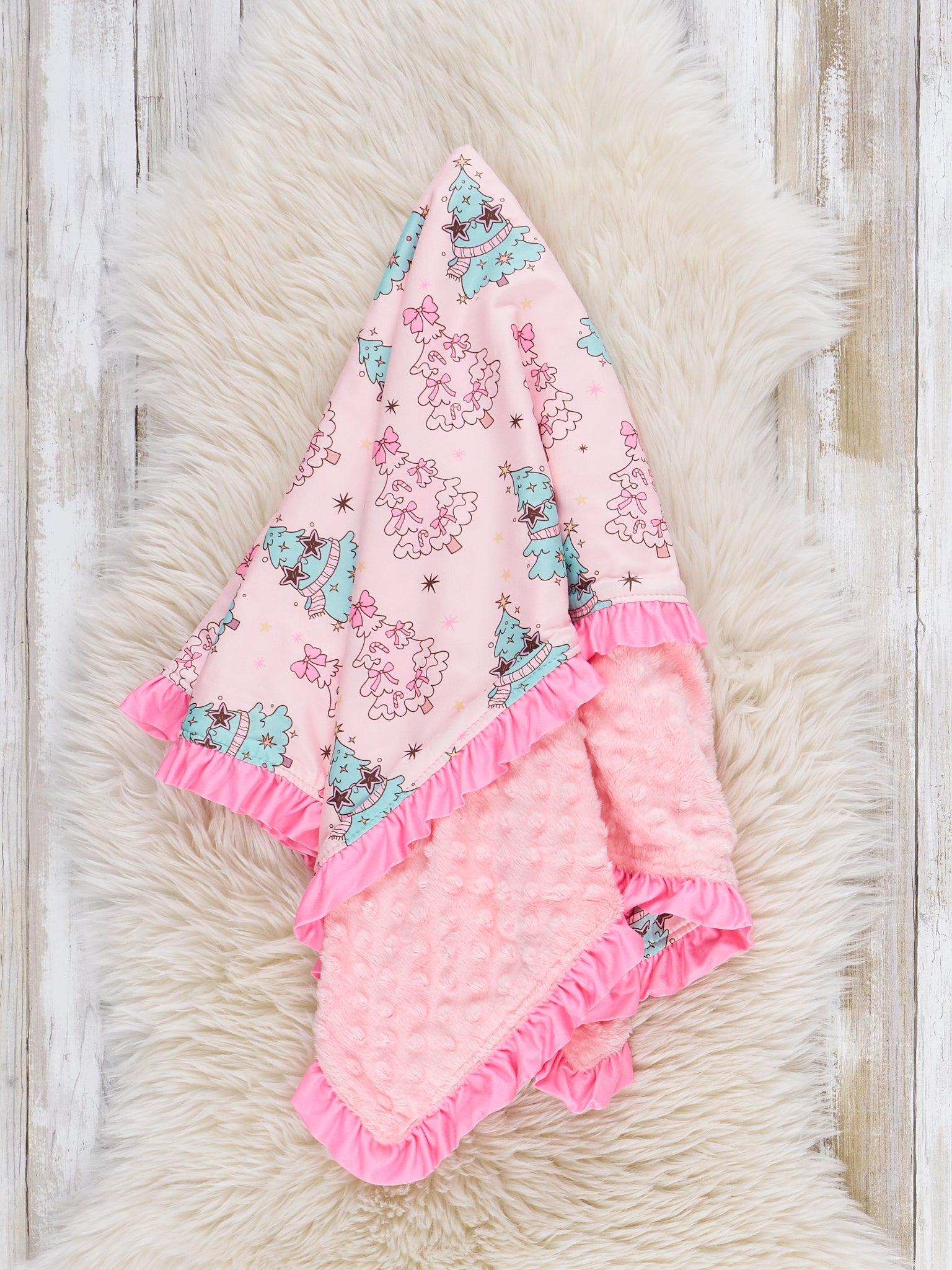 Snowy Sleigh Deliveries Ruffle Minky Blanket