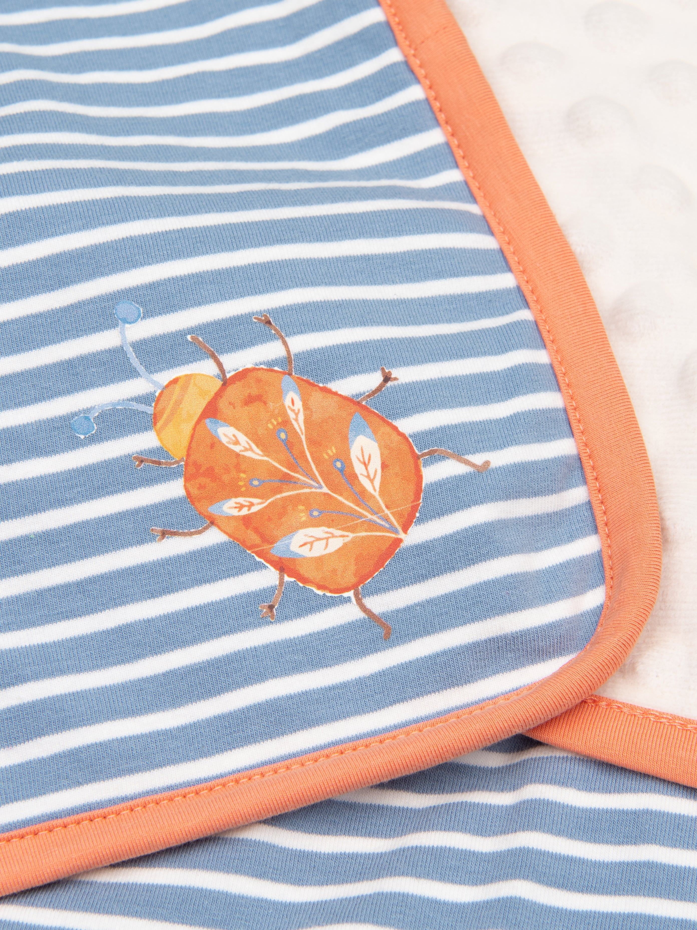 Springtime is just around the corner & this MNC exclusive collection is a MUST-HAVE this season! This high-quality collection has the softest material & is made to grow with your little one! This sweet blanket features one soft minky side & our Tennessee Garden Stripes on the other with a sweet bug detail & coral trim.