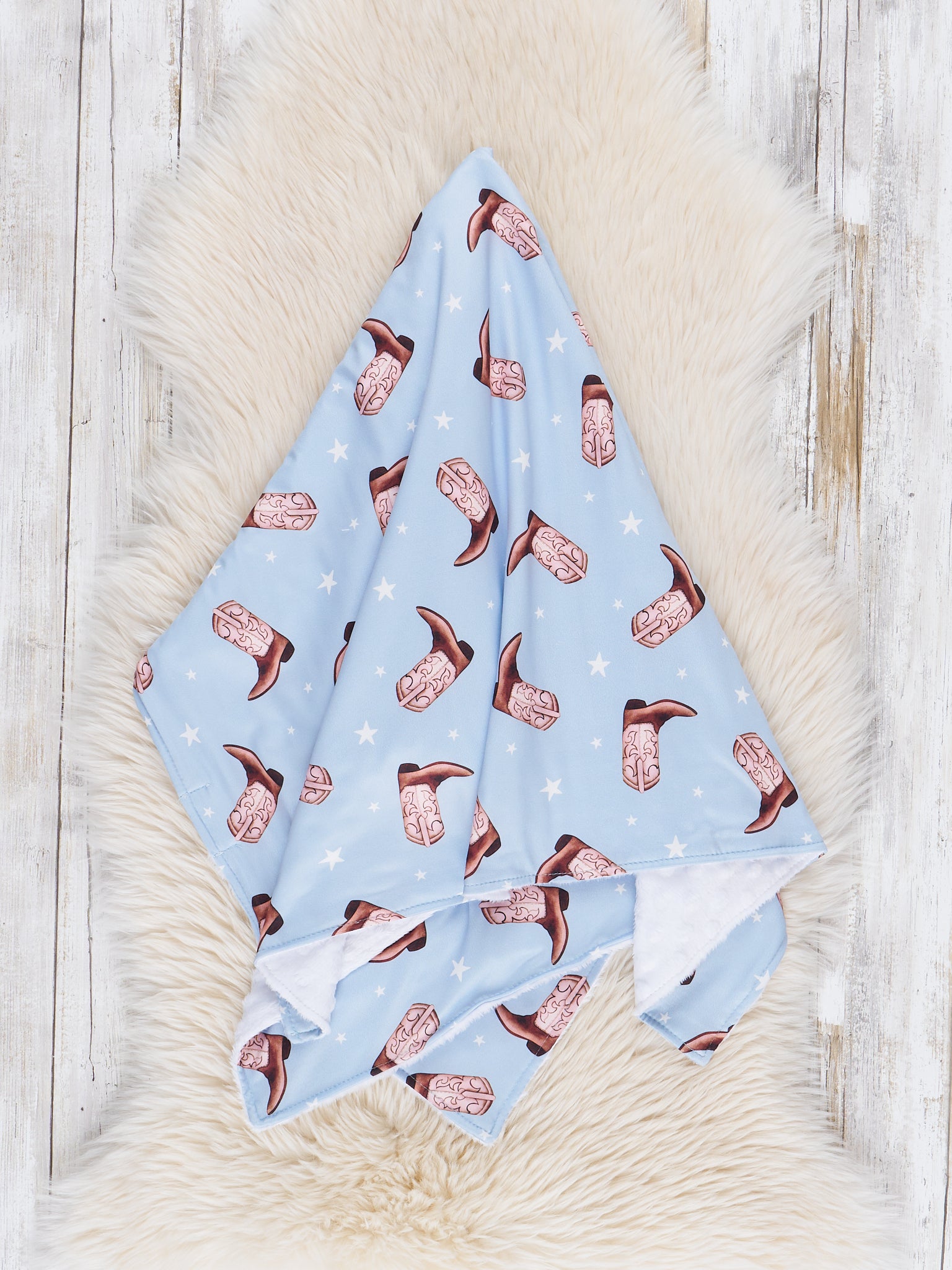 Kick up some fun with our Boot Scoot Minky Blanket! This adorable boys’ bubble from Marie Nicole Clothing features a classic western boot print and comfy, easy-on styling. Perfect for summer days, country outings, or rodeo fun—your little cowboy will be ready to scoot in style! Match it with a coordinating sibling set for a picture-perfect roundup.
