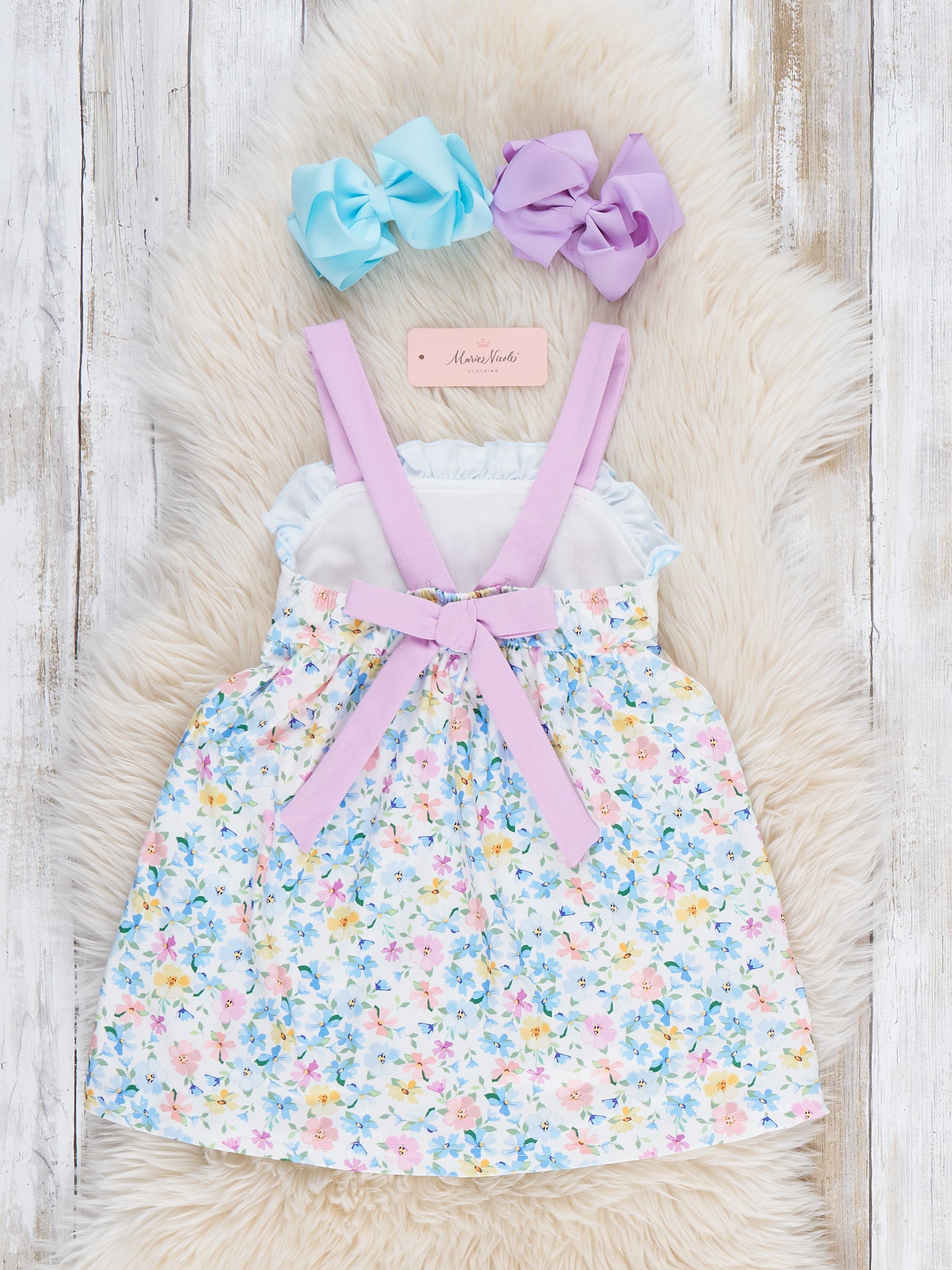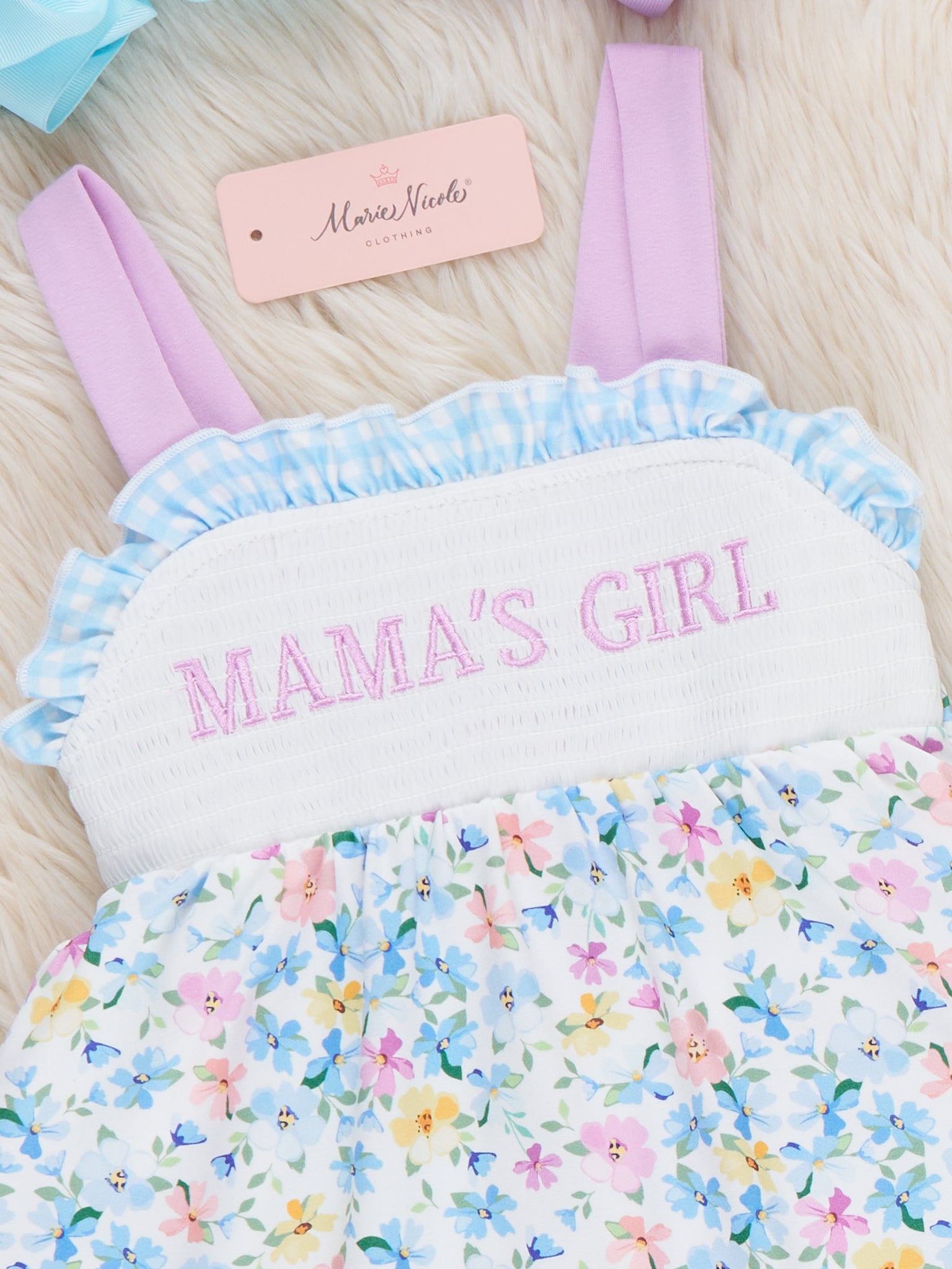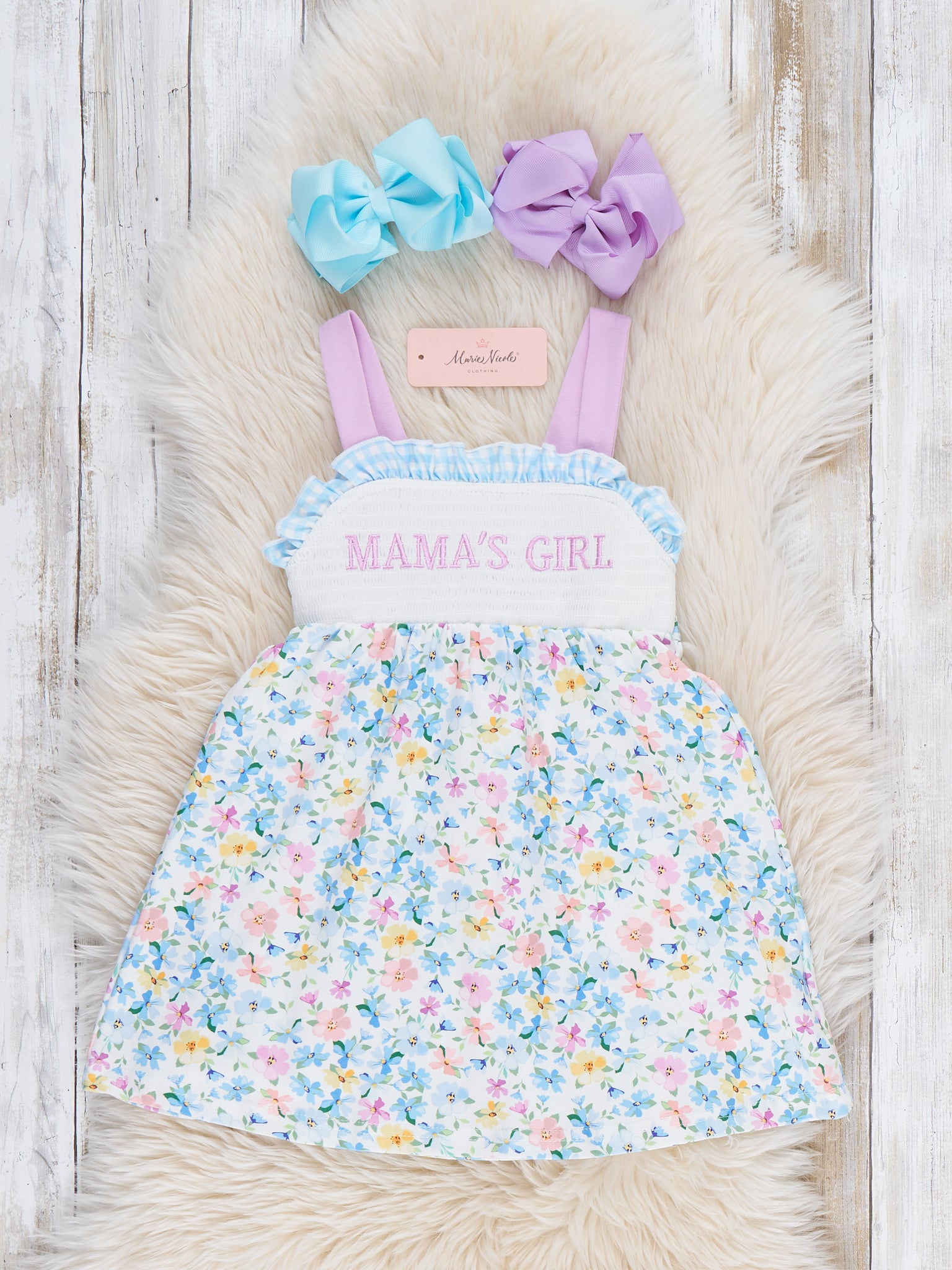 The MAMA'S GIRL Petal Hem Smocked Ruffle Dress by Marie Nicole Clothing celebrates sweet bonds with its smocked bodice for perfect fit. Petal hem and ruffle details add twirly charm for playful movement, while soft stretchy fabric keeps little ones comfy all day. Ideal for family outings, photos, or mama-daughter moments full of joy and boutique flair.