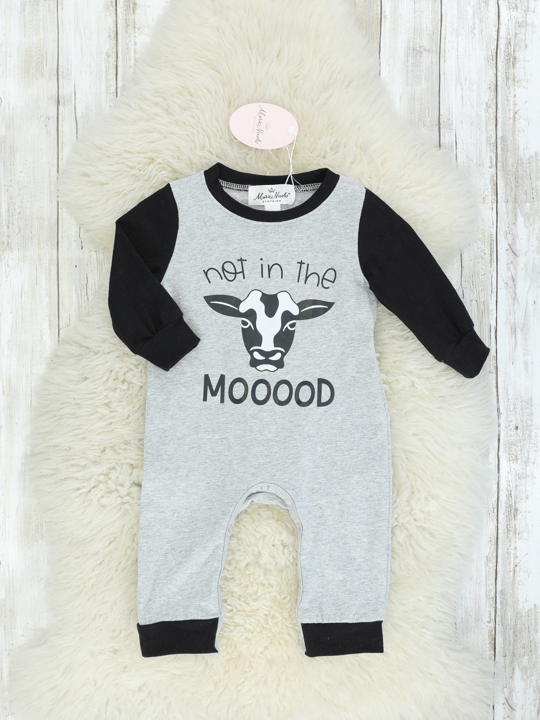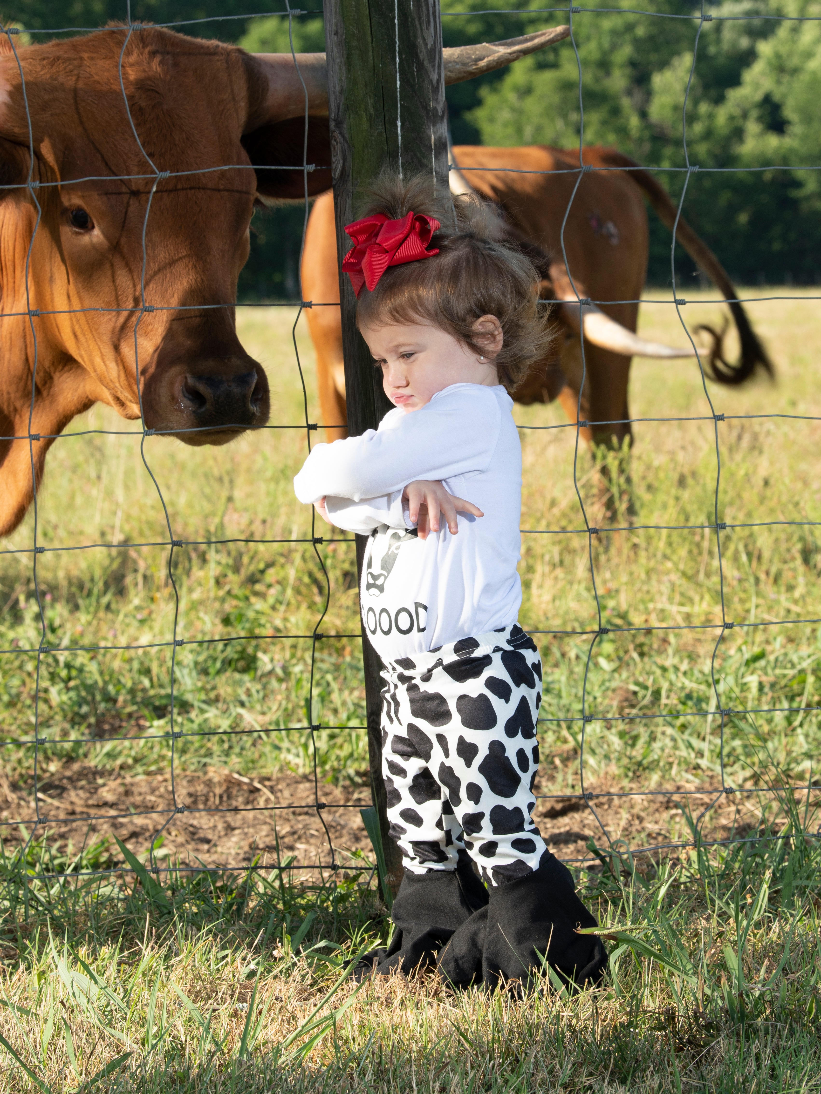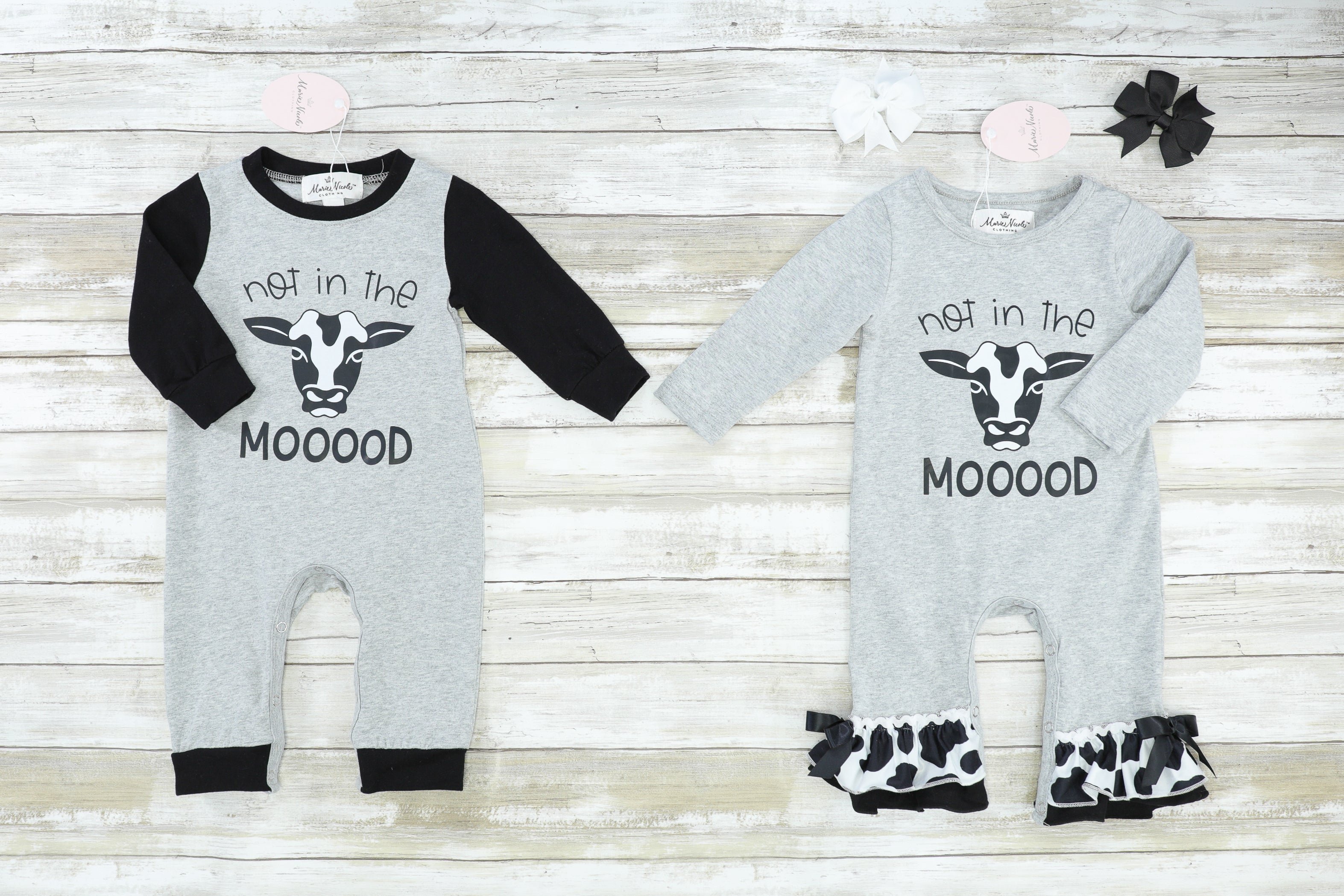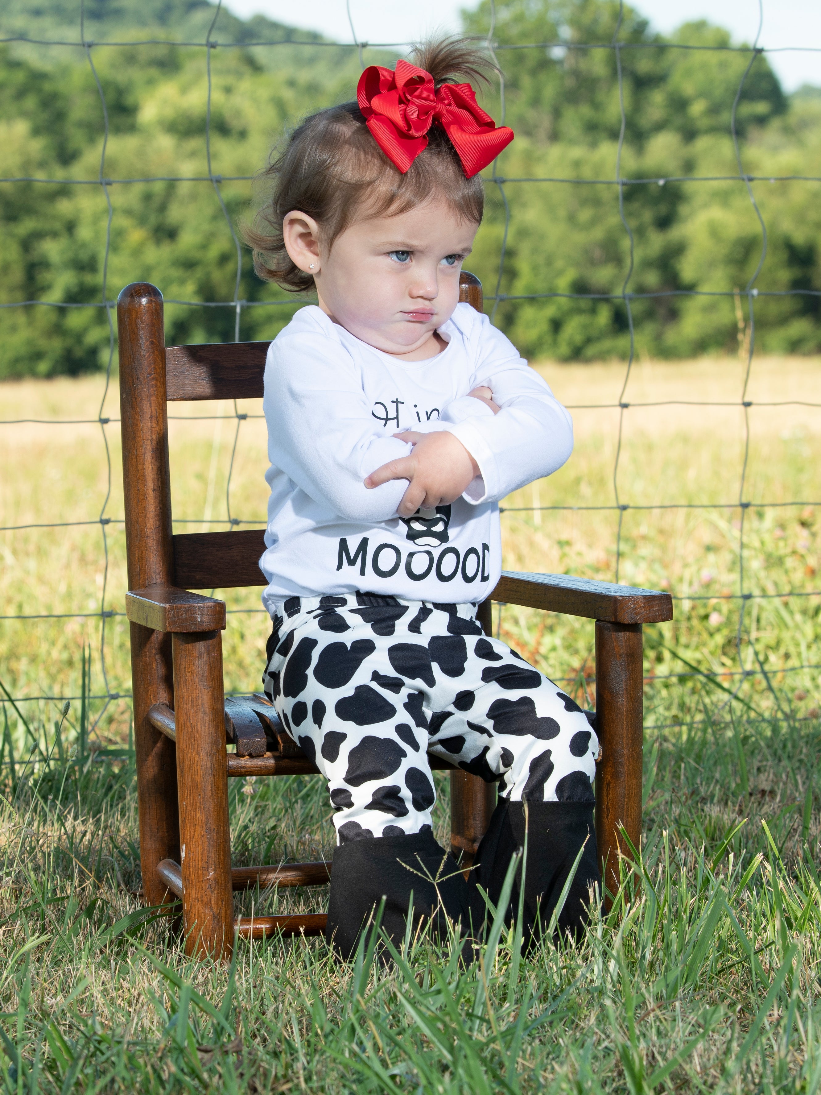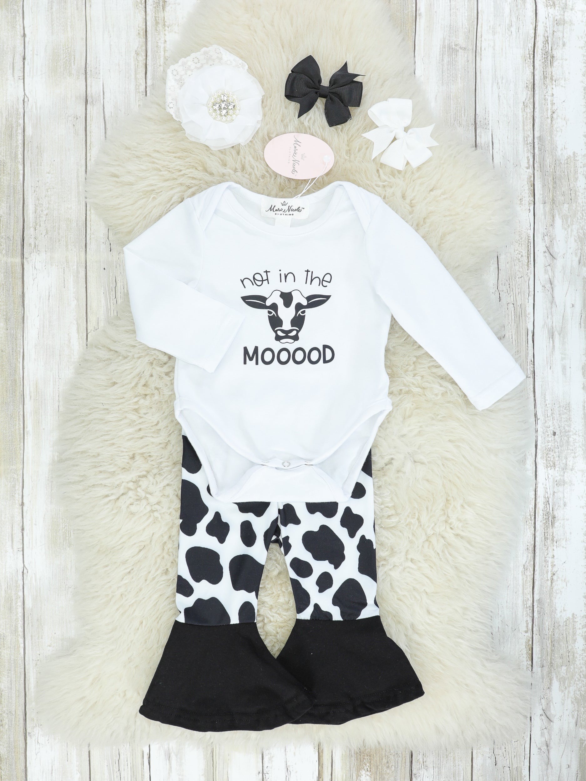 Fuchsia "Not In The MOOOOD" Ruffle Romper & Cow Print Bell Bottoms Outfit