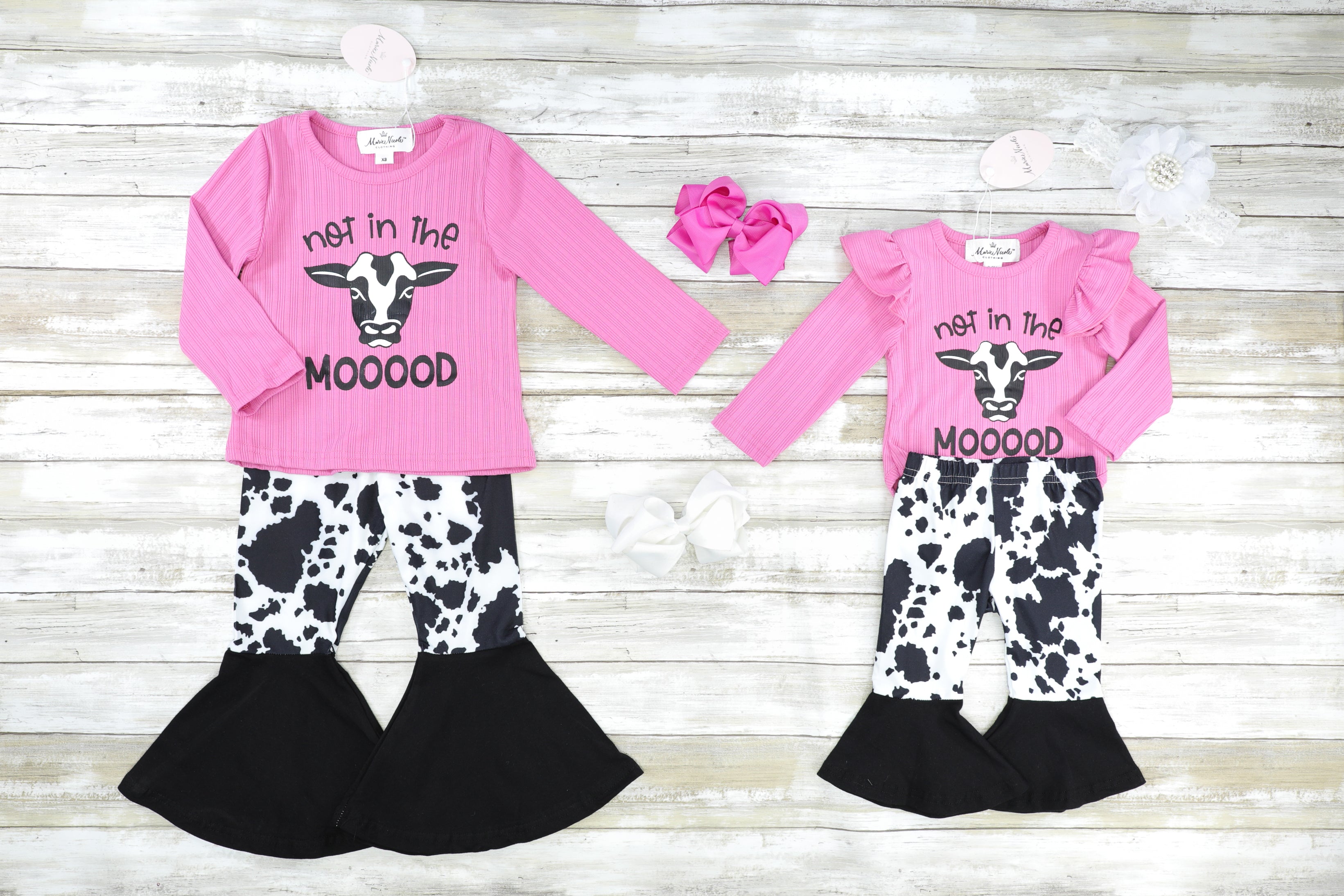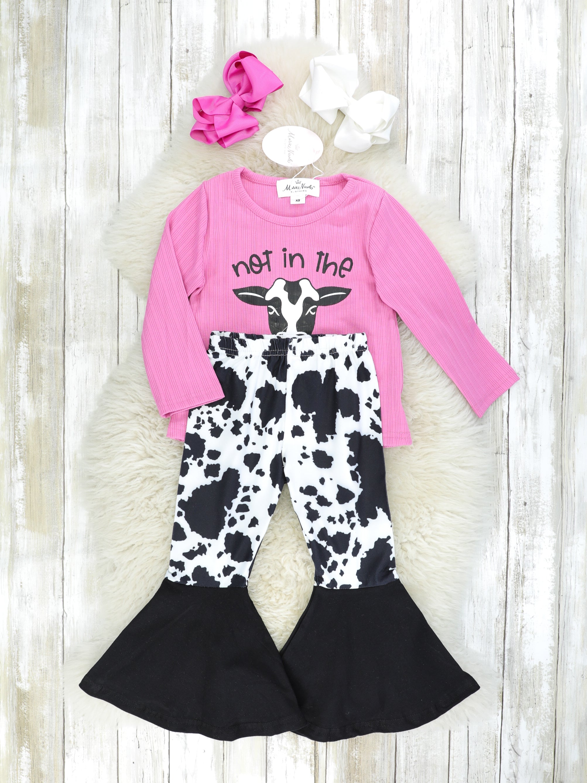 Fuchsia "Not In The MOOOOD" Top & Cow Print Bell Bottoms