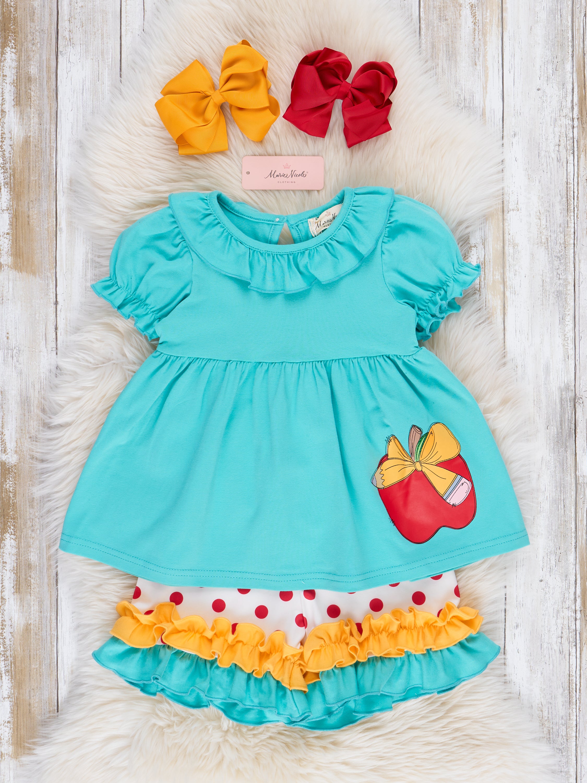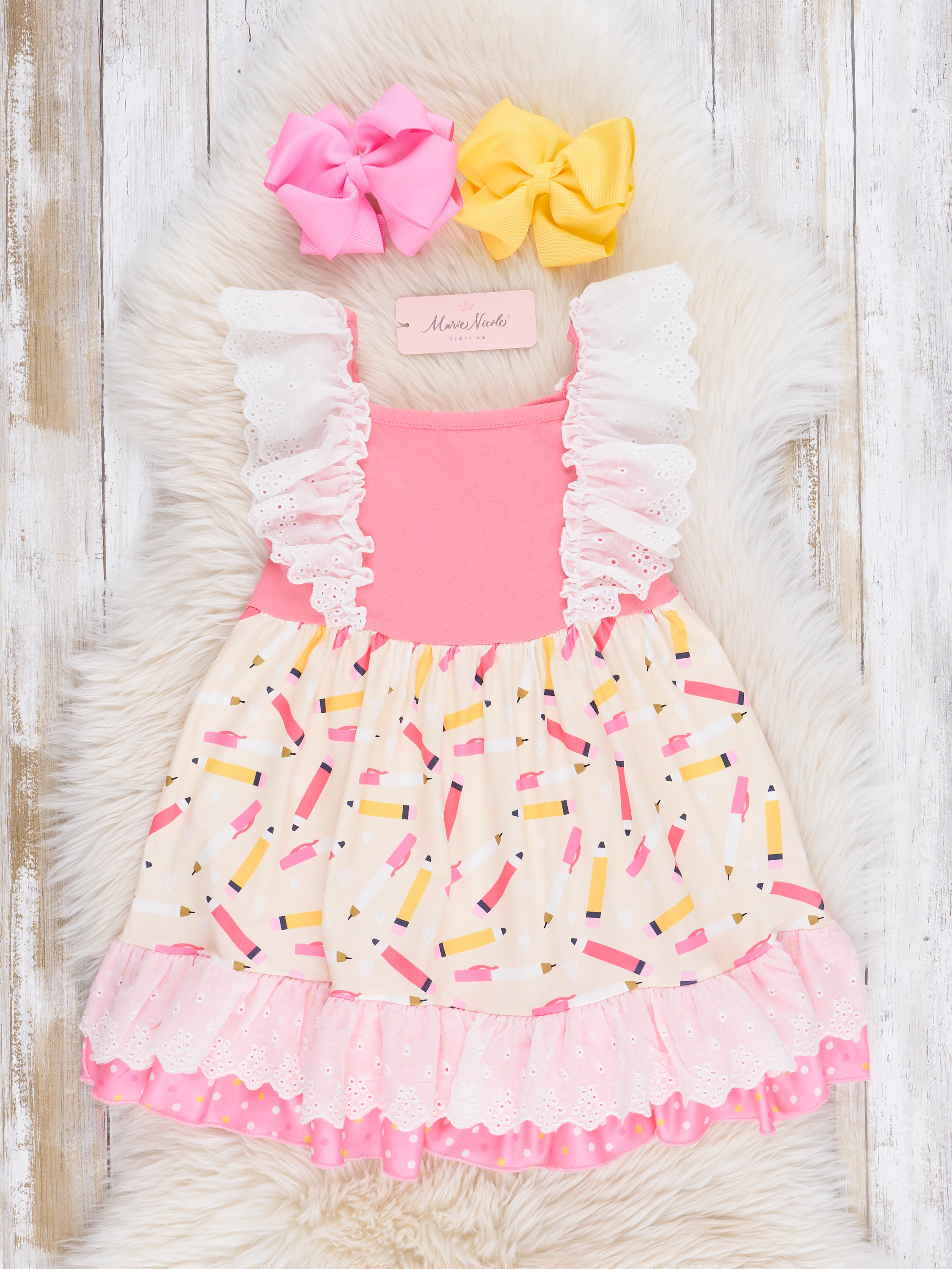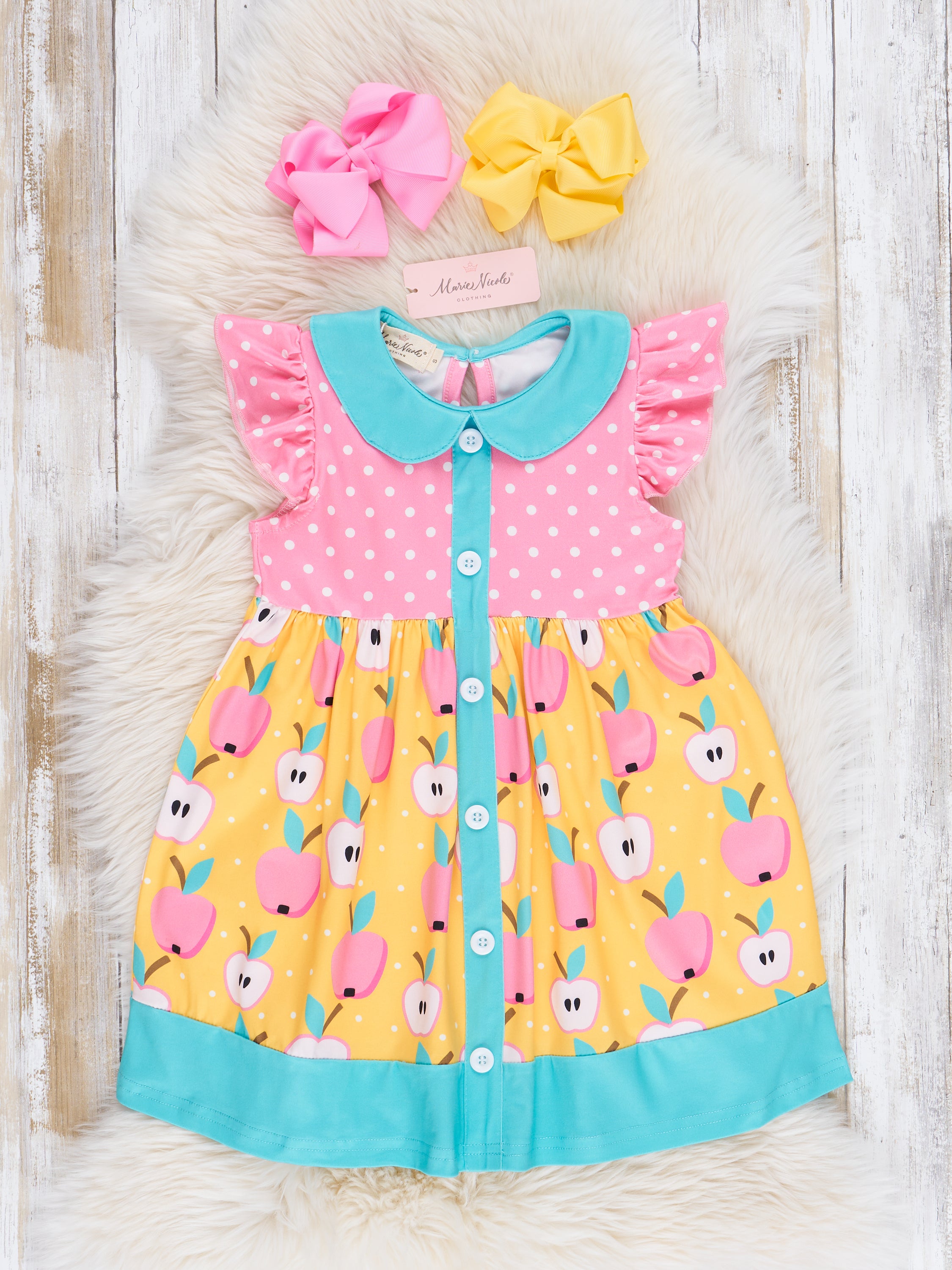 Coral & Turquoise School Time Pocket Ruffle Dress
