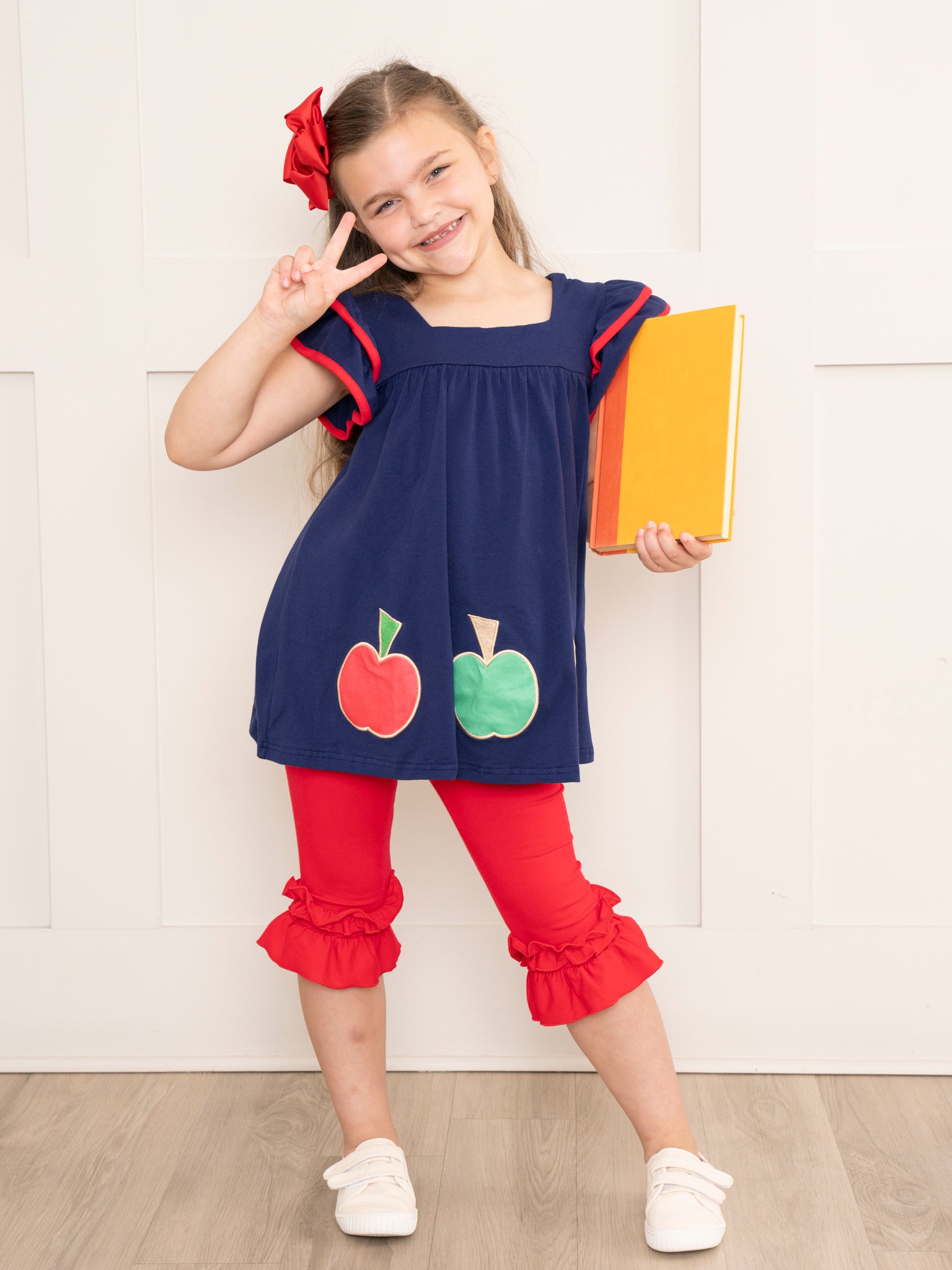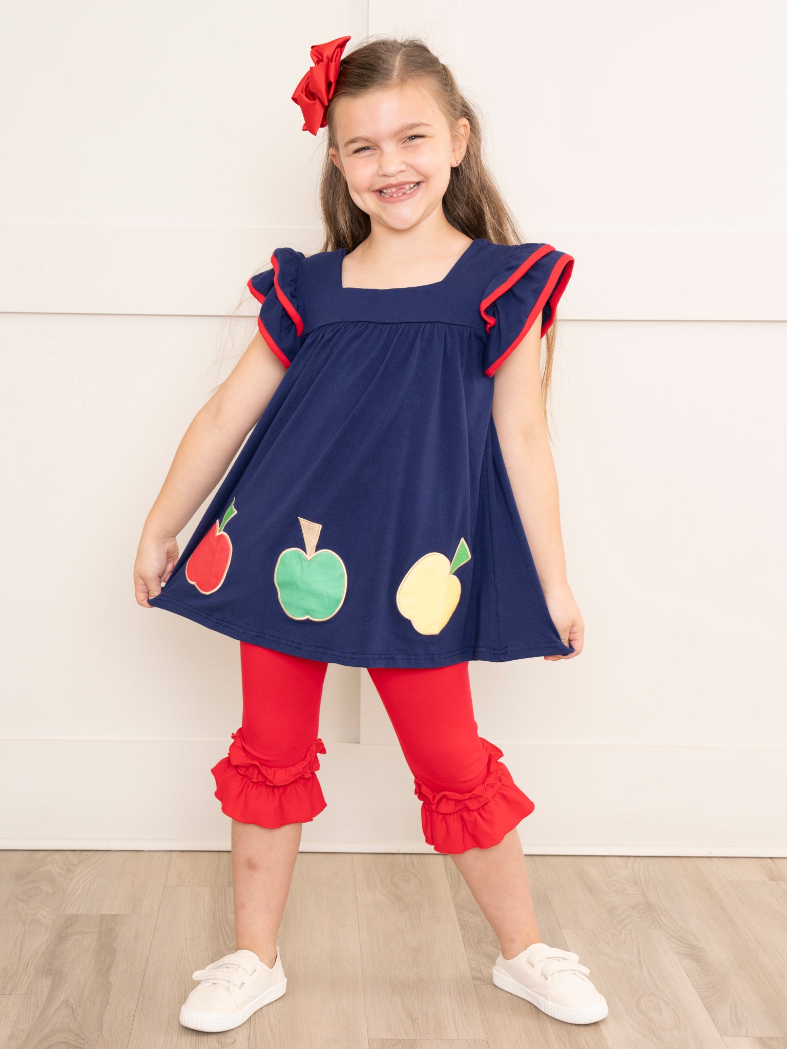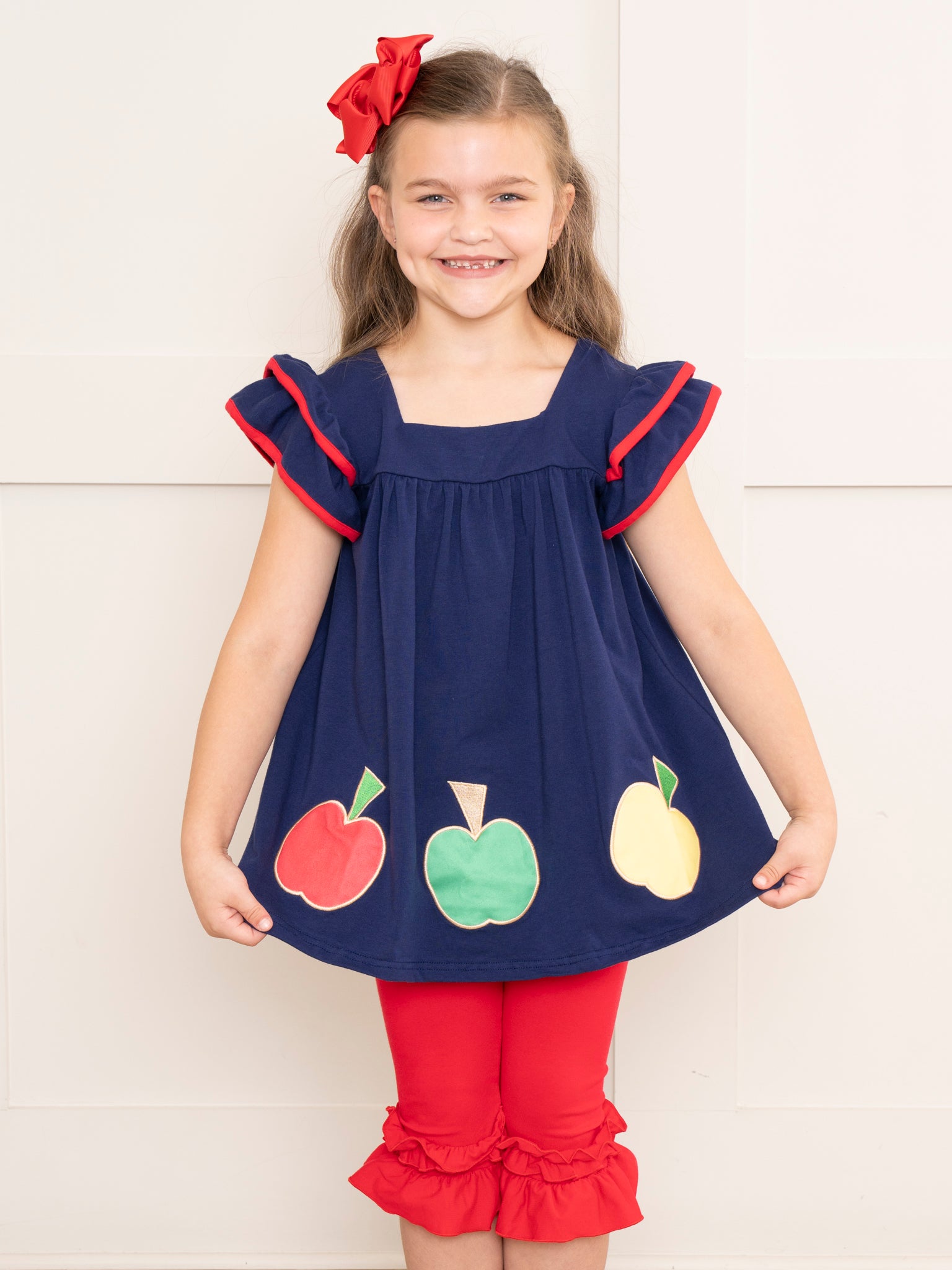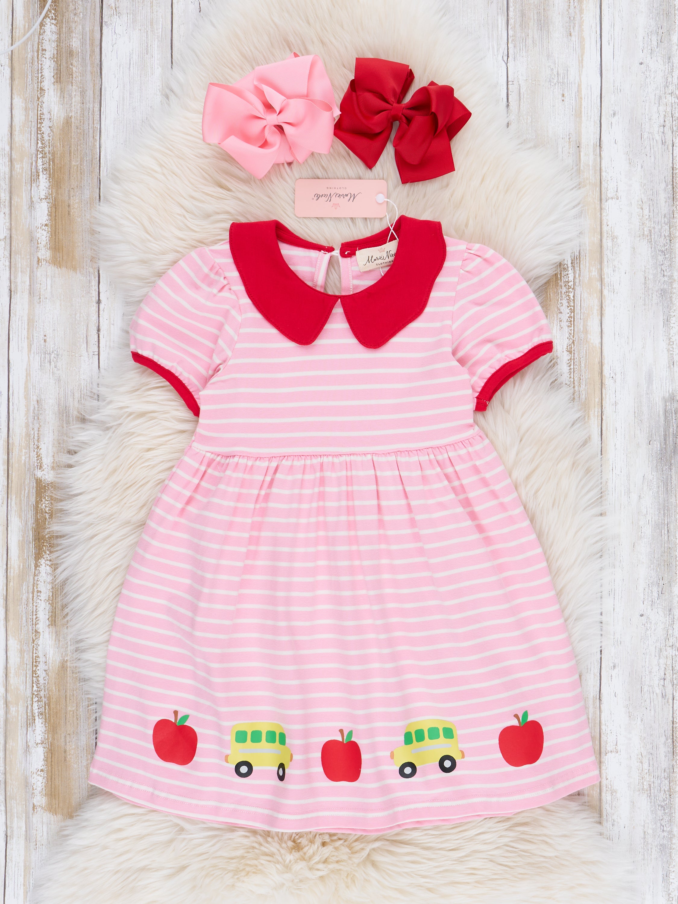 Coral & Turquoise School Time Pocket Ruffle Dress