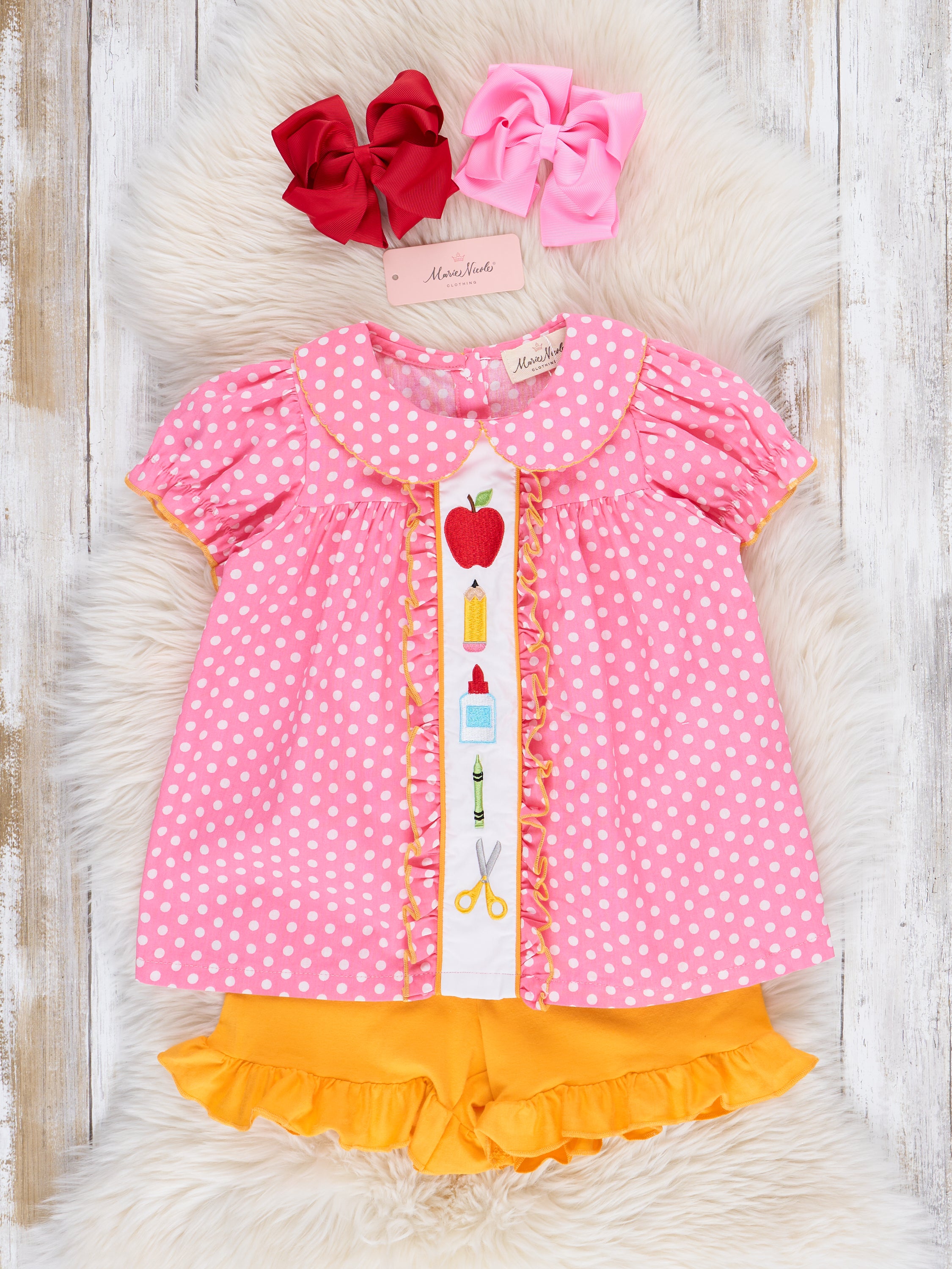 Pink & Yellow Embroidered Pecking Hen Outfit
