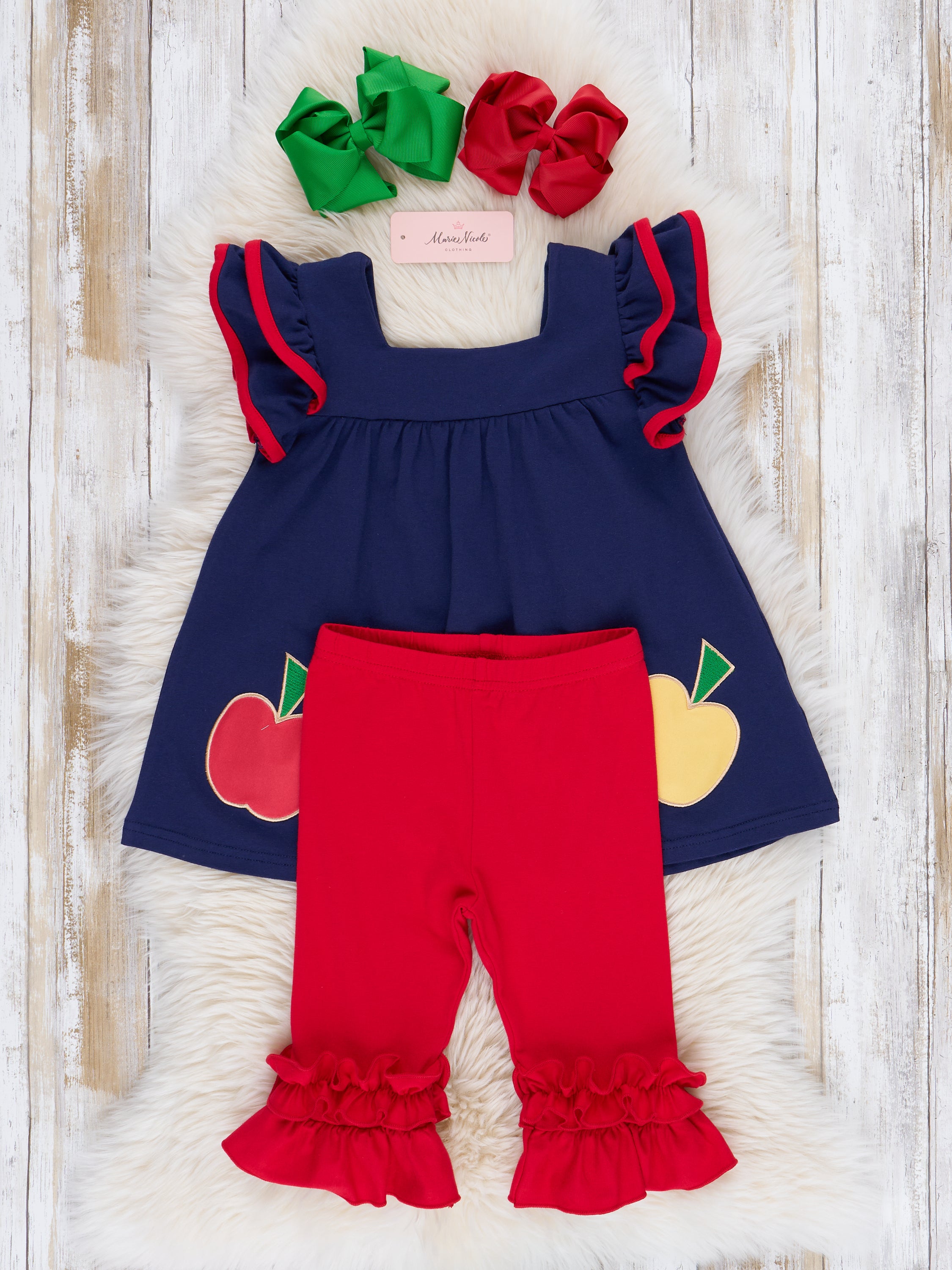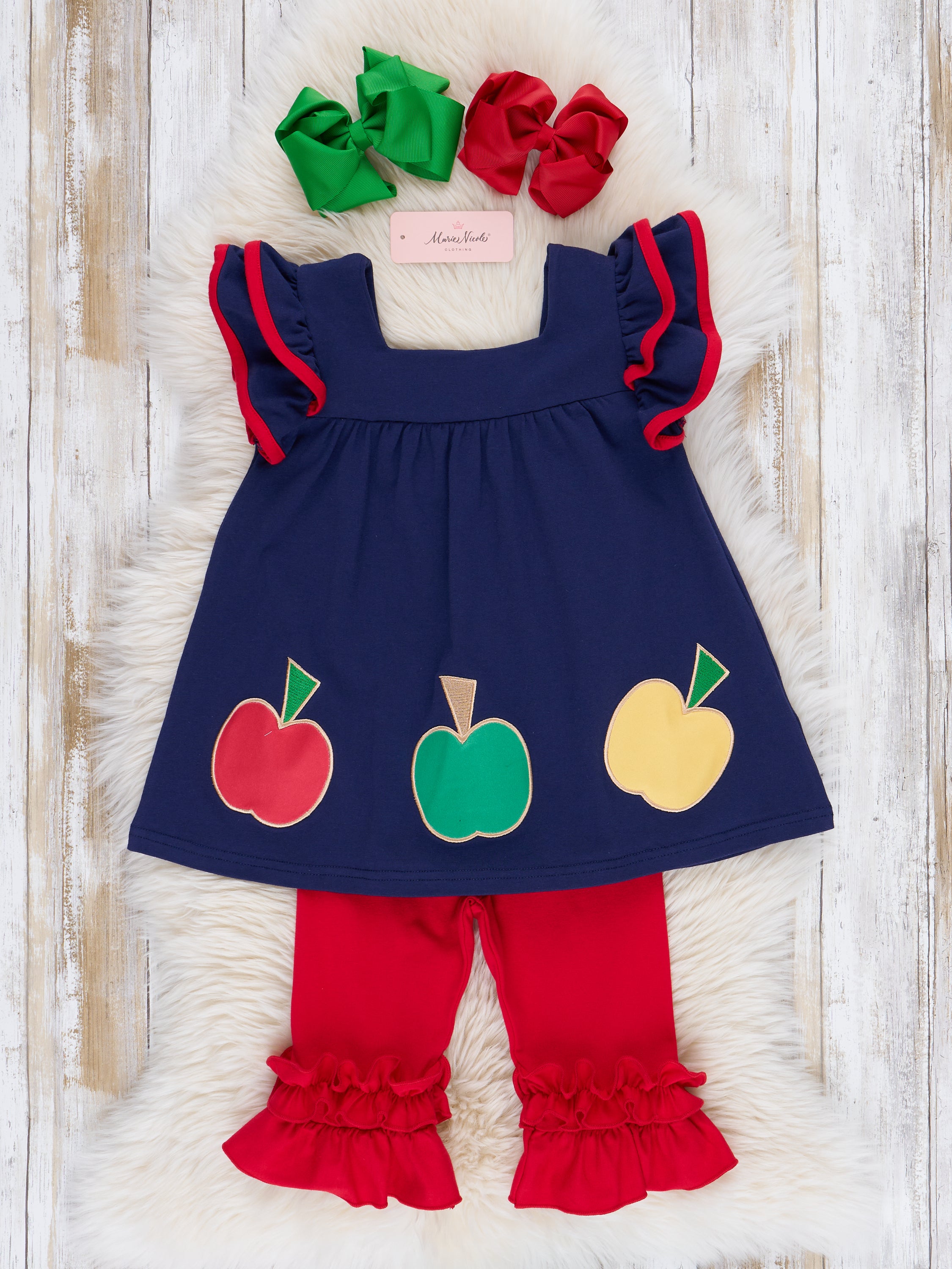 Blue Gingham Embroidered Crayons Ruffle Outfit