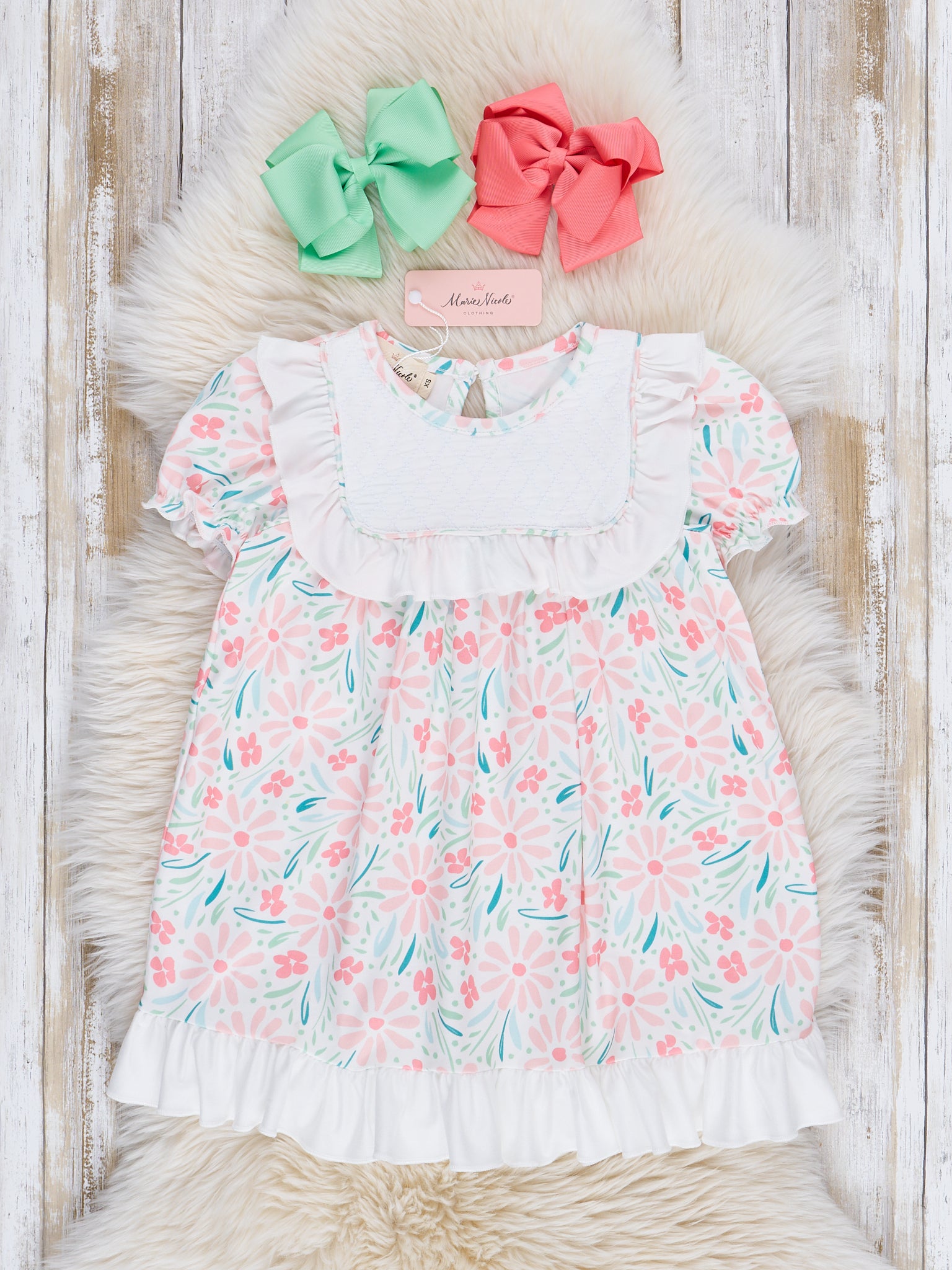 Peach & Pink Blooms Smocked Ruffle Bubble