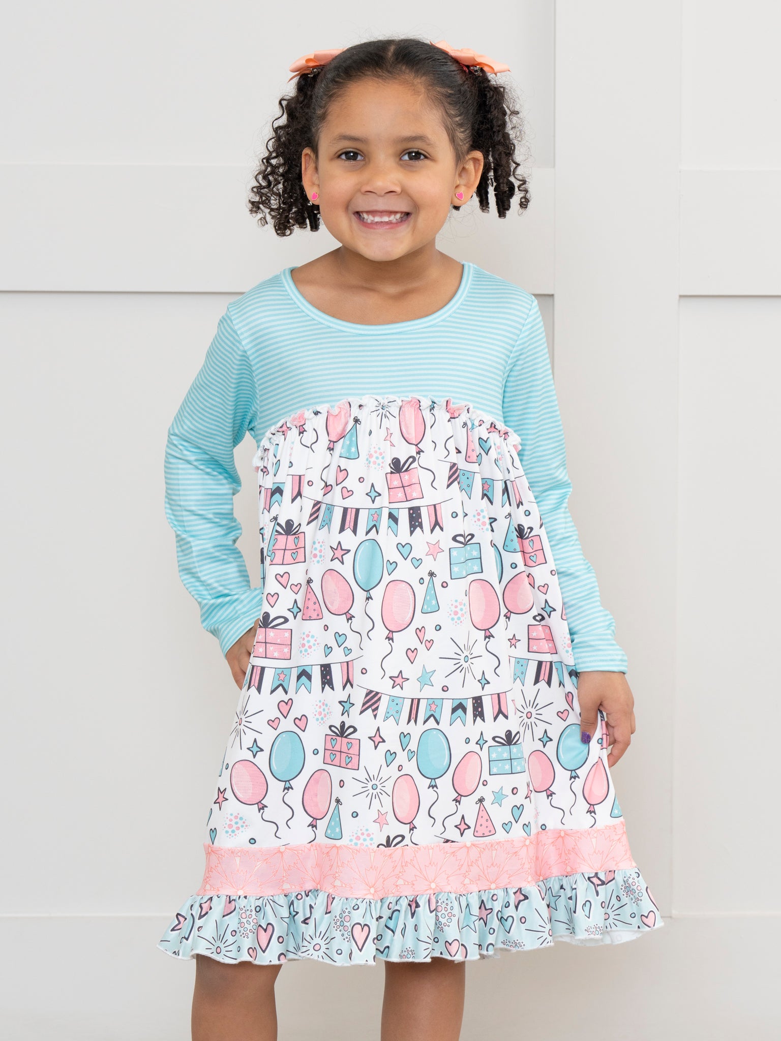 Ice Blue Bumble Bee Smocked Ruffle Dress