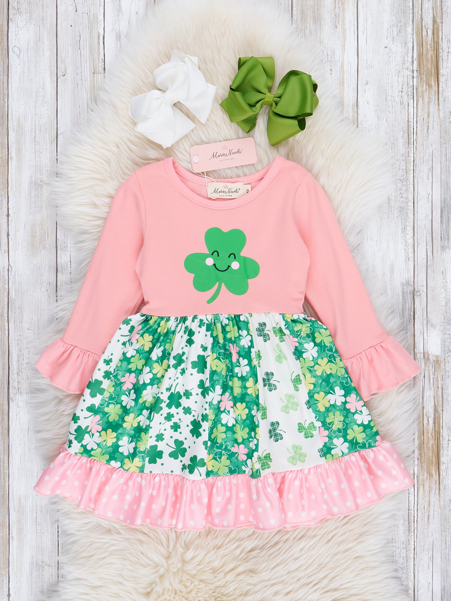 Lucky Pink & Green Clovers Lacy Ruffle Outfit